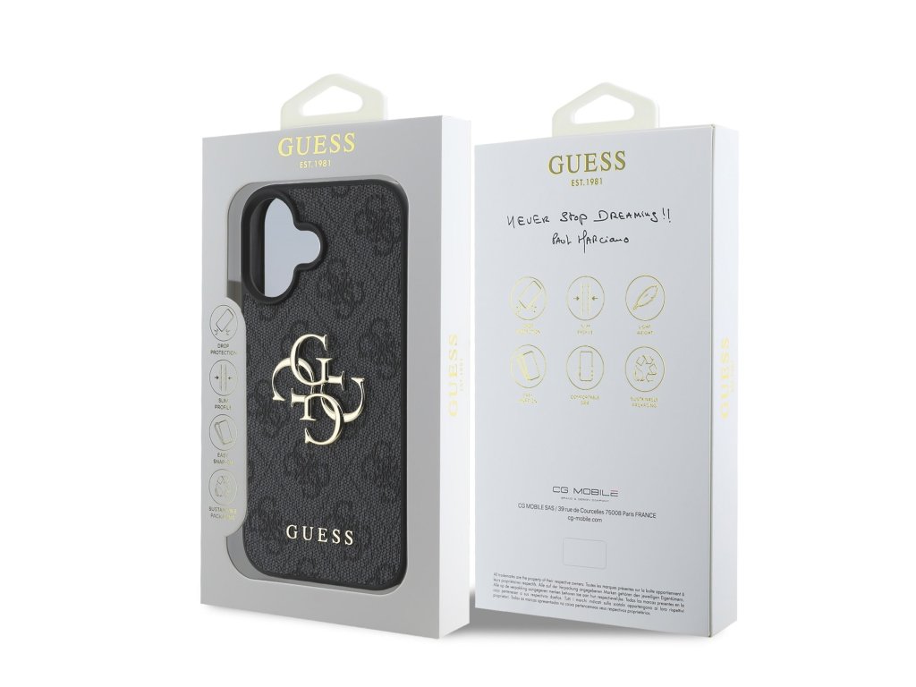 Guess PU 4G Metal Logo Zadní Kryt pro iPhone 16 Grey