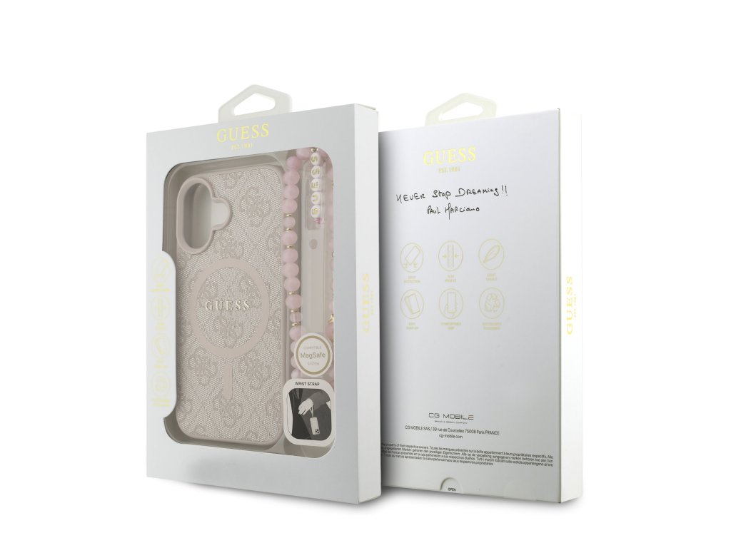Guess PU Leather 4G Colored Ring Strap MagSafe Zadní Kryt pro iPhone 16 Pink