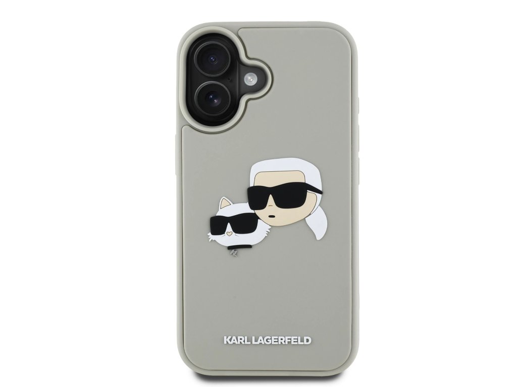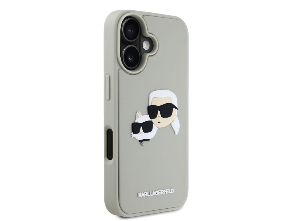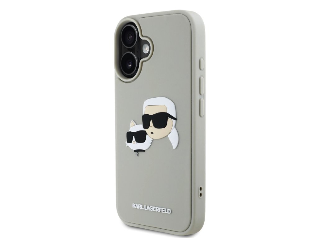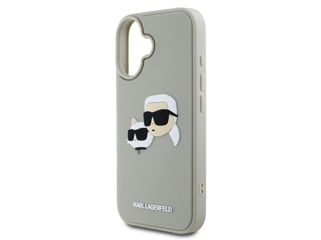 Karl Lagerfeld 3D Rubber Double Heads Zadní Kryt pro iPhone 16 Beige