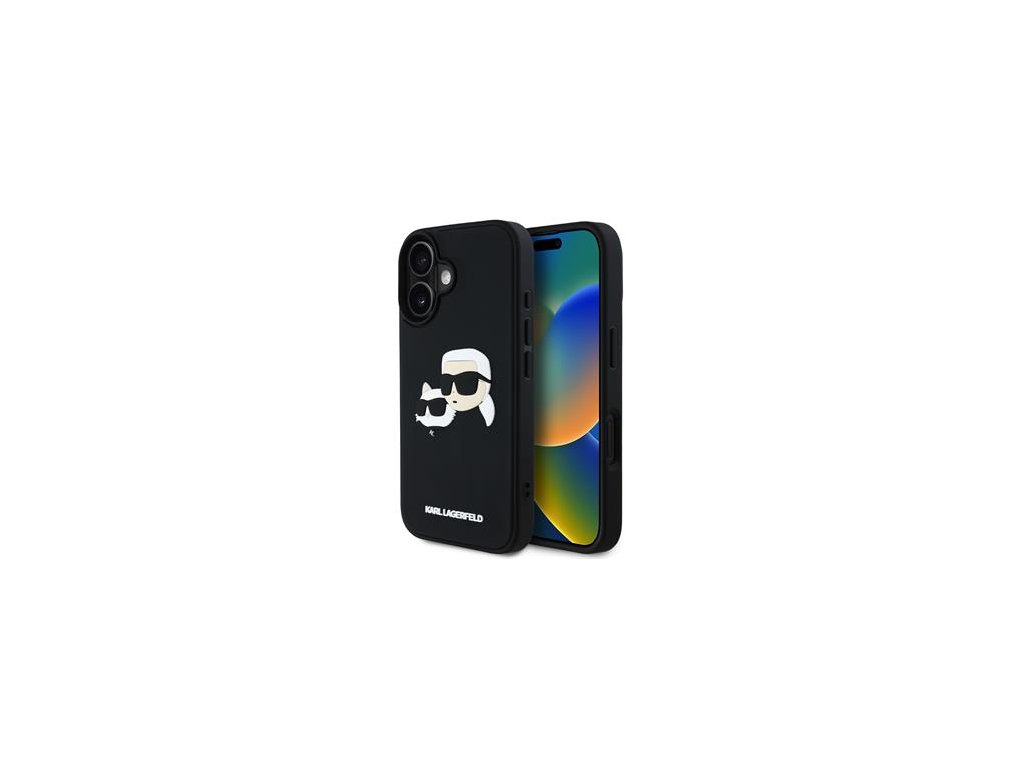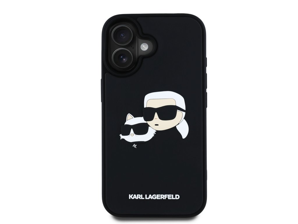 Karl Lagerfeld 3D Rubber Double Heads Zadní Kryt pro iPhone 16 Black