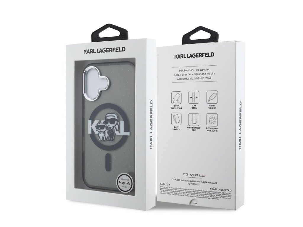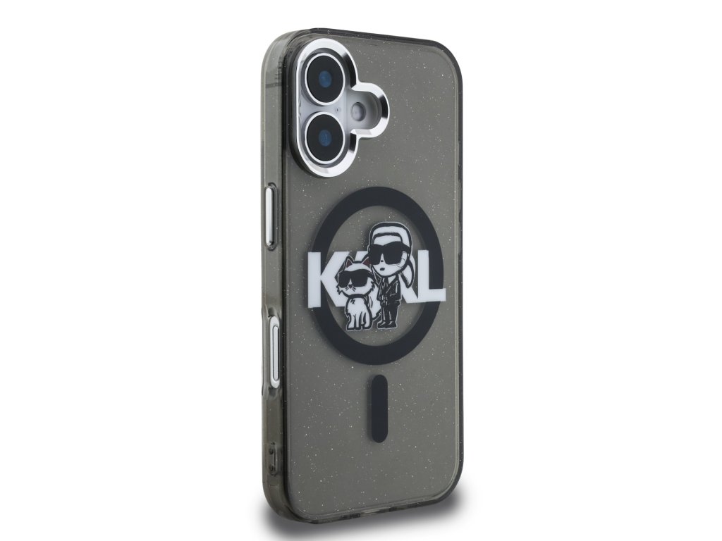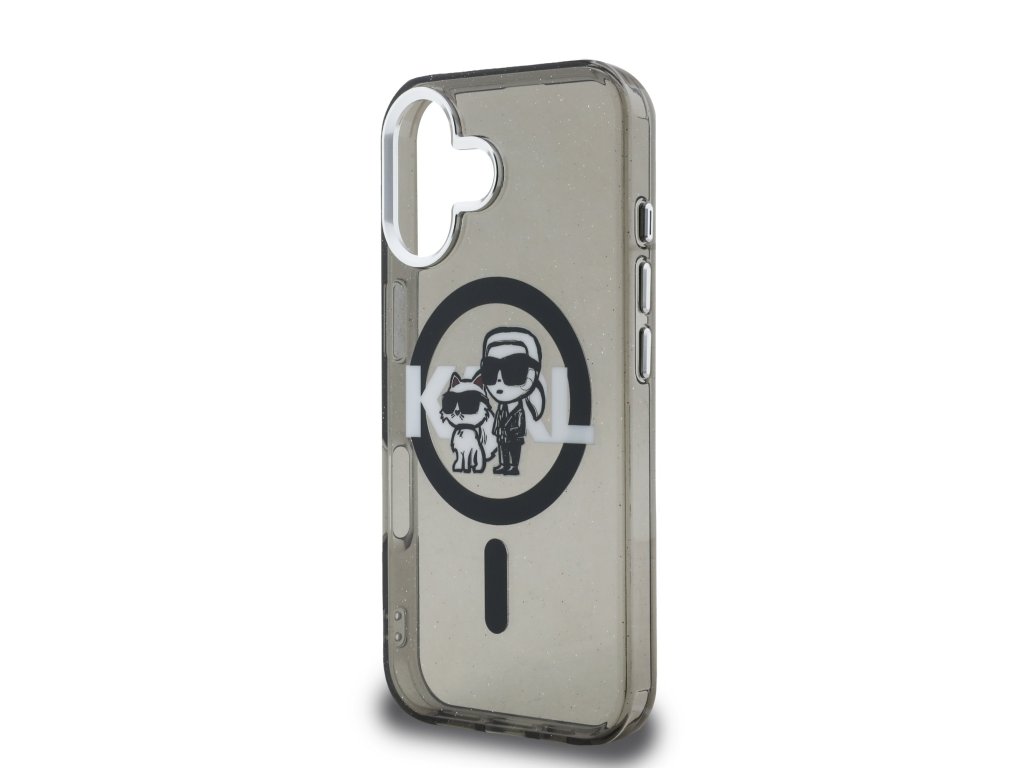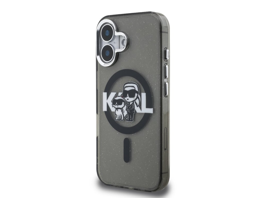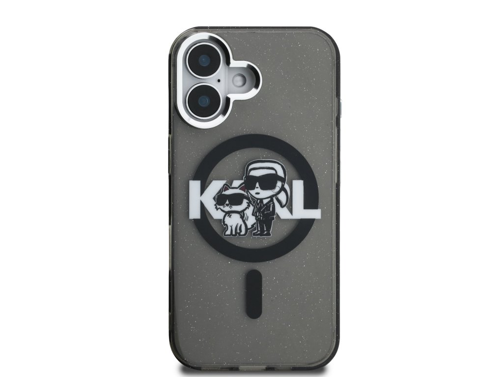 Karl Lagerfeld IML Glitter Karl and Choupette Sketch MagSafe Zadní Kryt pro iPhone 16 Black