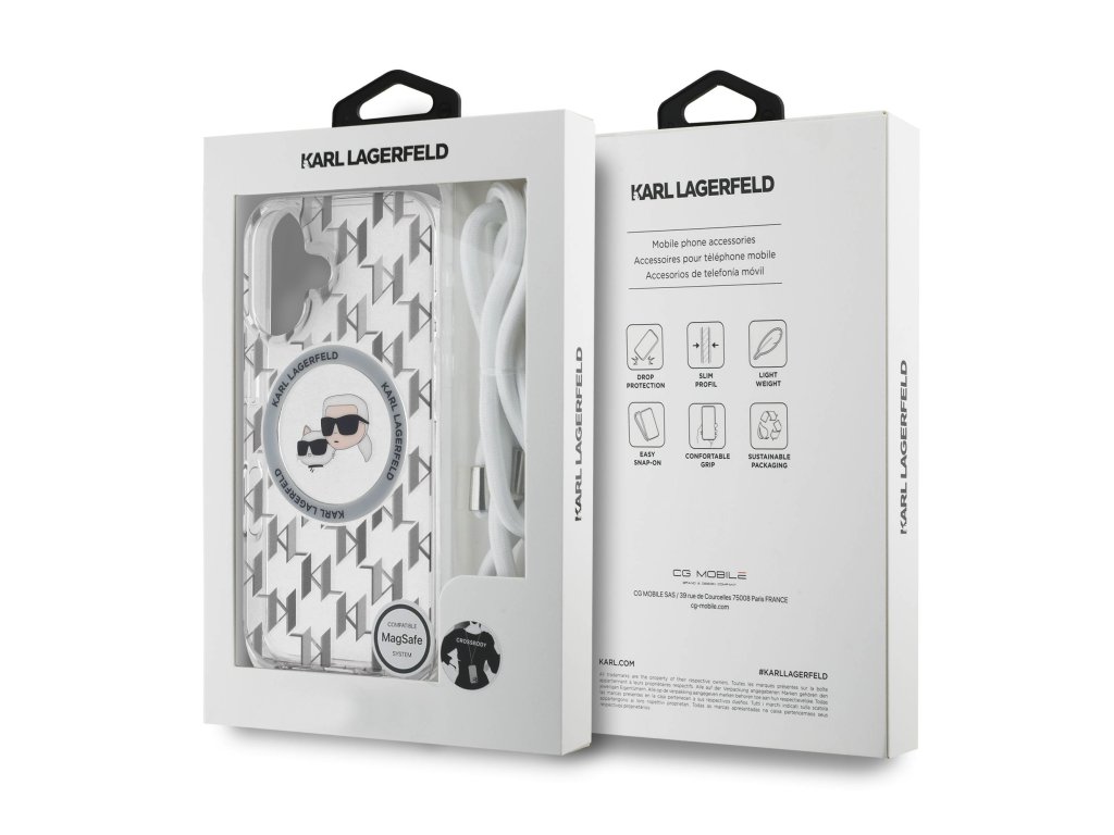 S prémiovým krytem Karl Lagerfeld IML Monogram Crossbody K&CH Heads MagSafe získáte nejen elegantní ochranu pro váš telefon, ale také praktický crossbody popruh.S jeho skvělým designem s monogramem "KL" a ochrannými vlastnostmi bude váš telefon v bezpečí v každé situaci a navíc zaujem na první pohled.