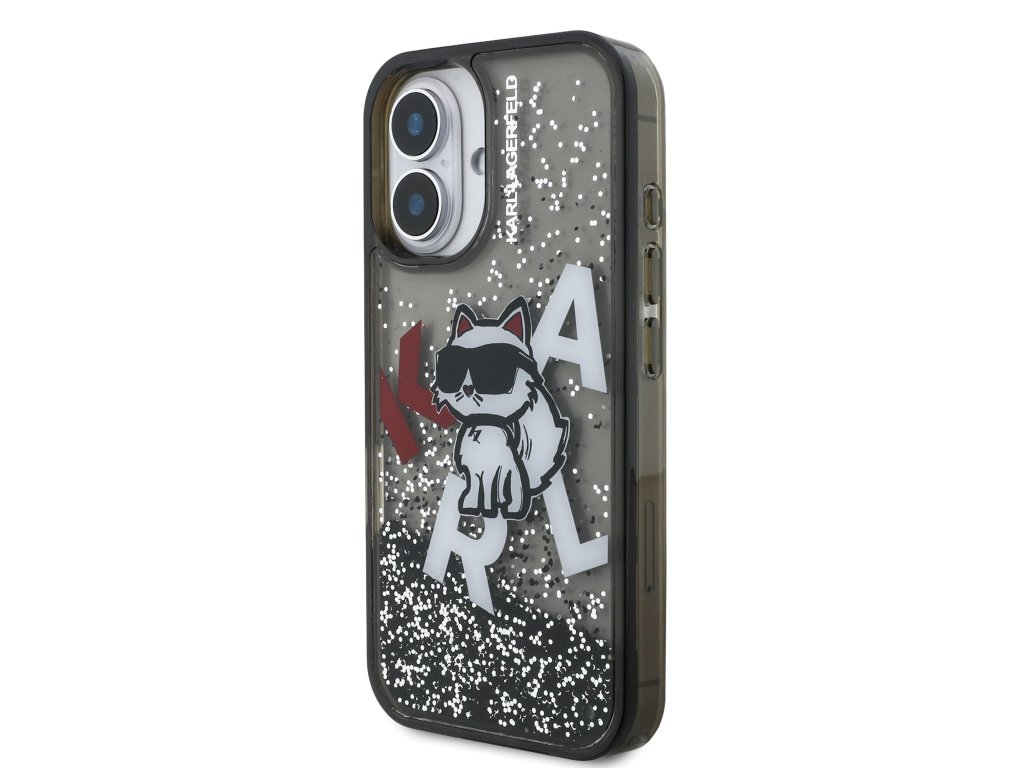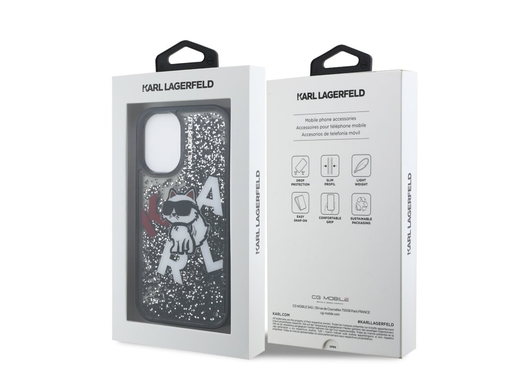 Karl Lagerfeld Liquid Glitter Scattered Choupette Zadní Kryt pro iPhone 16 Black