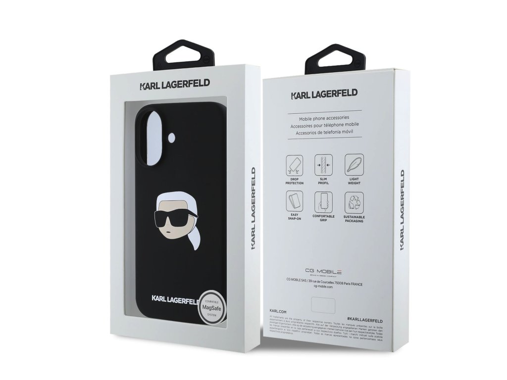Karl Lagerfeld Liquid Silicone Karl Head MagSafe Zadní Kryt pro iPhone 16 Black