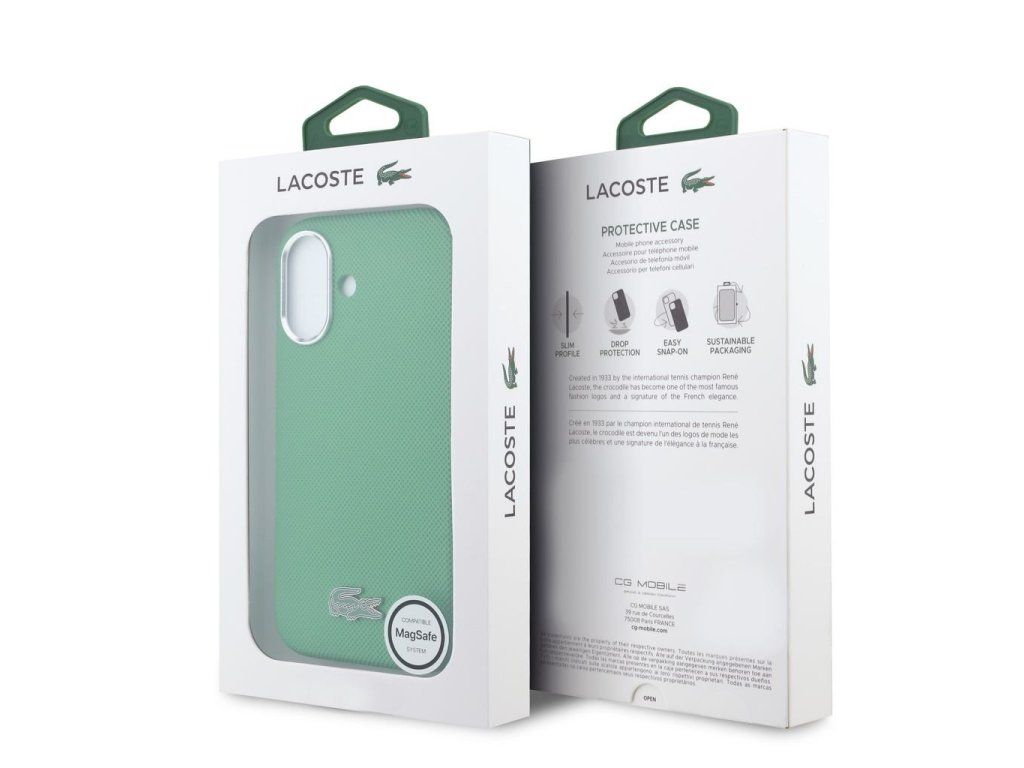 Lacoste PVC Iconic Petit Pique Metal Logo MagSafe Zadní Kryt pro iPhone 16 Estragon Green