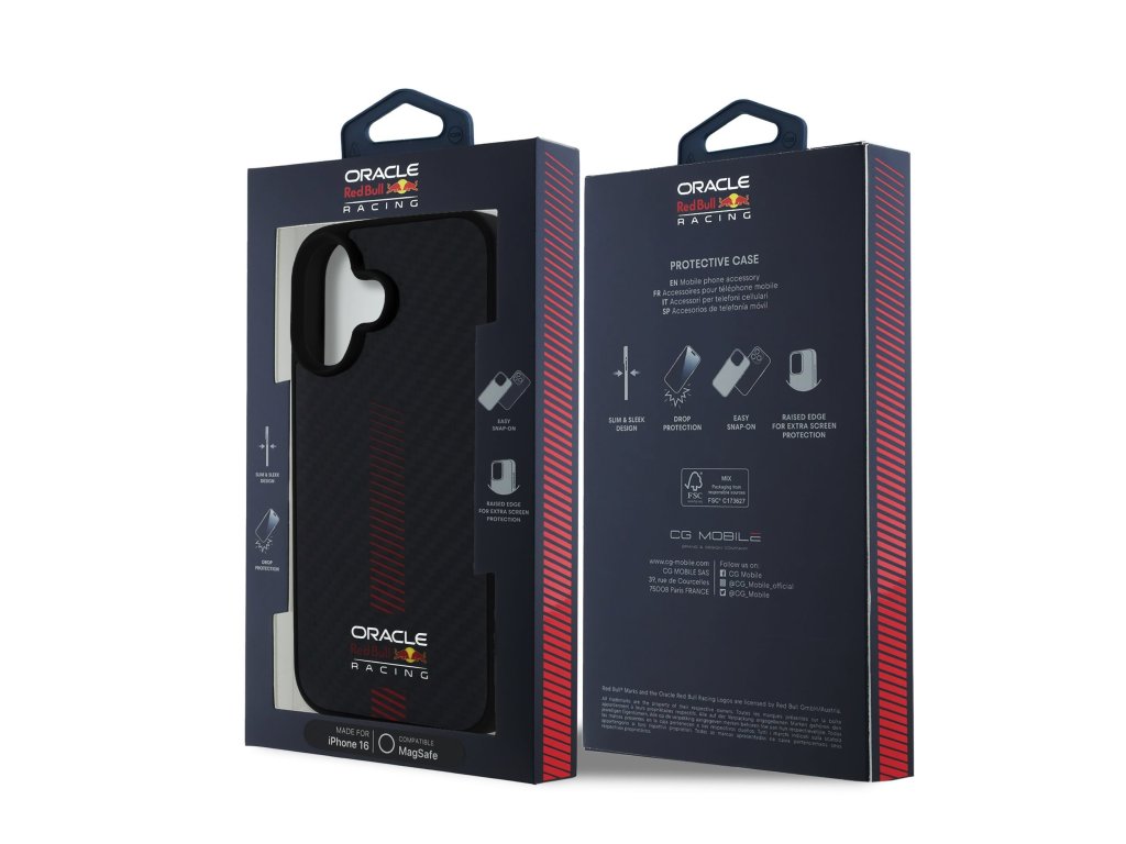 Zadní kryt Red Bull Carbon Powerbar MagSafe – Perfektní spojení stylu a výkonu!Vstupte do světa rychlosti a preciznosti s originálním krytem Oracle Red Bull Racing, který přináší špičkovou ochranu pro váš telefon.