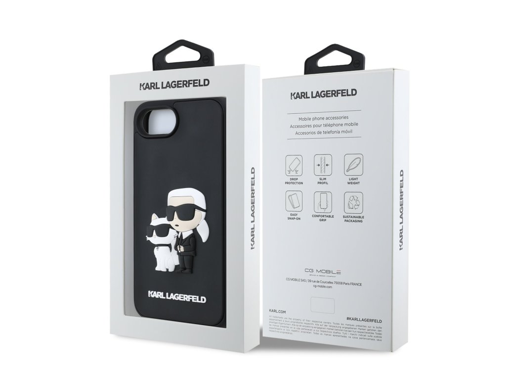Karl Lagerfeld 3D Rubber Karl and Choupette Zadní Kryt pro iPhone 16e Black