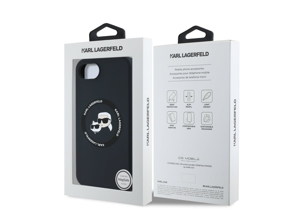 Karl Lagerfeld Liquid Silicone K&CH Heads MagSafe Zadní Kryt pro iPhone 16e Black