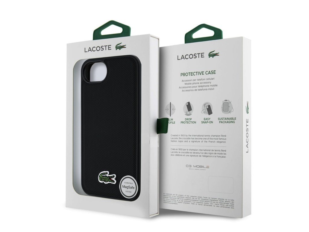 Lacoste Iconic Petit Pique Woven Logo MagSafe zadní kryt je dokonalý doplněk pro váš telefon i váš outfit, který kombinuje funkčnost a styl v jednom.Je vyrobený z lehké a odolného PU materiáliu a nabízí skvělou ochranu a pohodlí při používání. Vnitřní výstelka z jemného mikrovlákna zajišťuje, že váš telefon bude chráněn před poškrábáním a drobnými poškozeními.