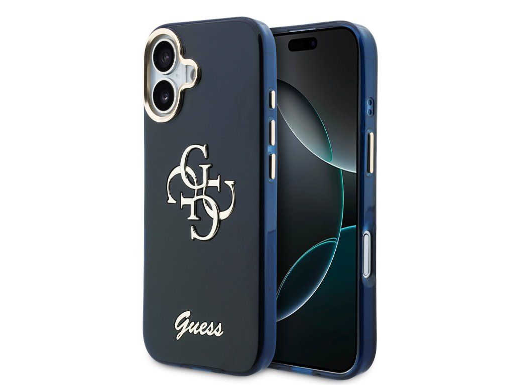 Guess IML 4G Script Metal Logo Zadní Kryt pro iPhone 17 Blue