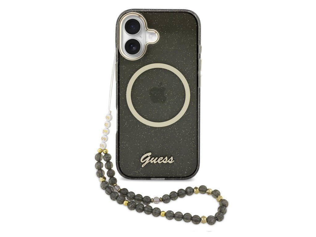 Guess IML Glitter Script Strap MagSafe Zadní Kryt pro iPhone 17 Black