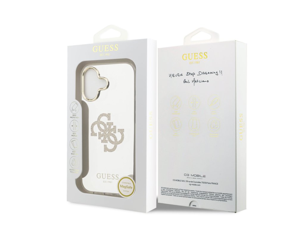 Guess PC/TPU Mirror 4G Glitter Logo MagSafe zadní kryt je dokonalý doplněk pro váš telefon i váš outfit, který kombinuje funkčnost a styl v jednom.Je vyrobený z odolného PC/TPU materiálu, který zajišťuje dlouhou životnost a spolehlivou ochranu při každodenním používání.