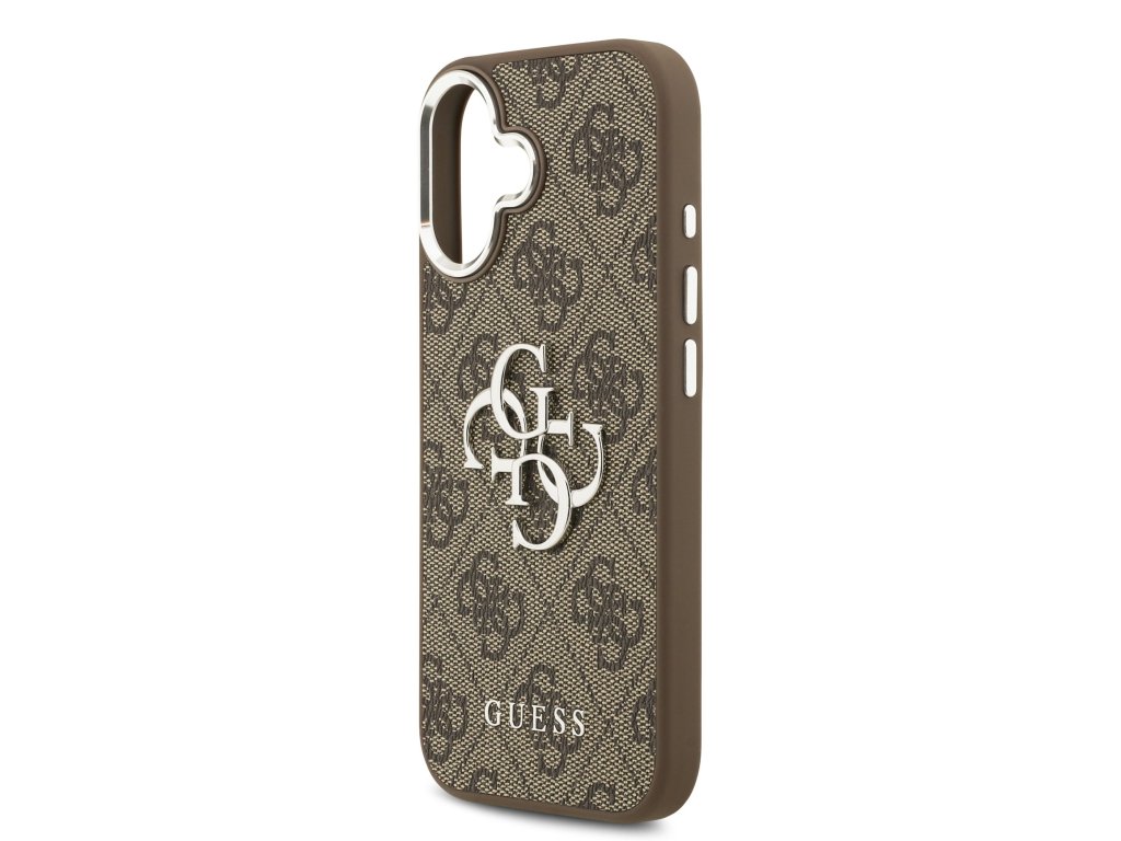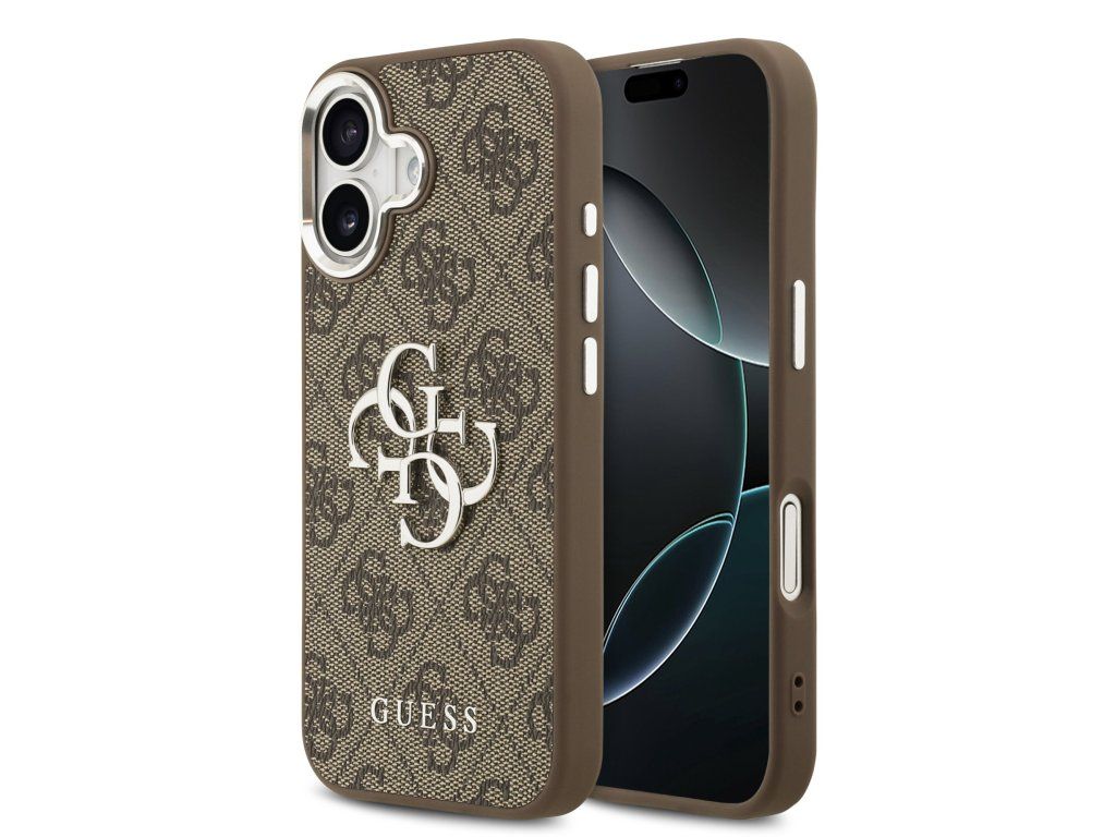 Guess PU 4G Metal Logo Zadní Kryt pro iPhone 17 Silver Brown
