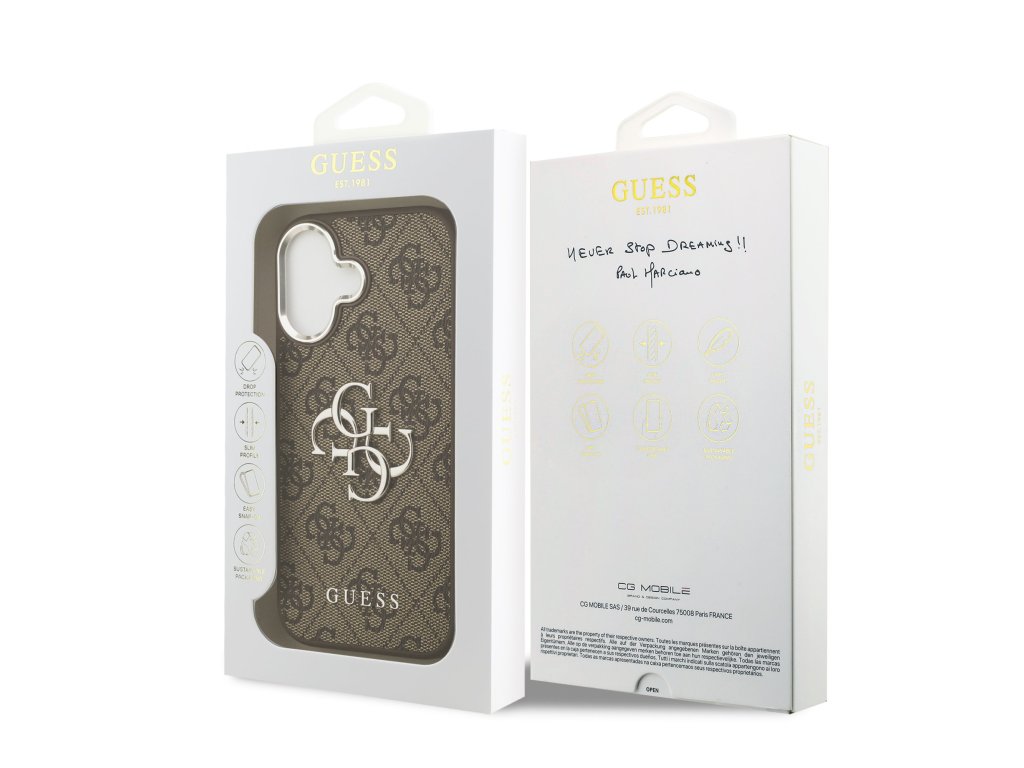 Prémiový zadní kryt Guess PU 4G Metal Logo se vyznačuje elegantním, charakteristickým 4G vzorem, doplněným o logo GUESS.Kryt je vyrobený z lehkého a odolného polyuretanu (PU) s povrchovou úpravou z PU kůže a nabízí tak nejen skvělou ochranu telefonu, ale také pohodlí při používání.