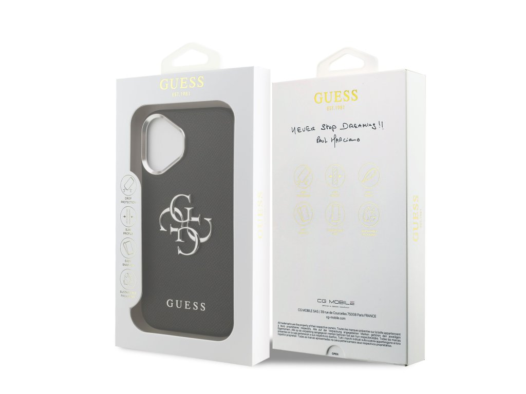 Guess PU Grained 4G Metal Logo Zadní Kryt pro iPhone 17 Black