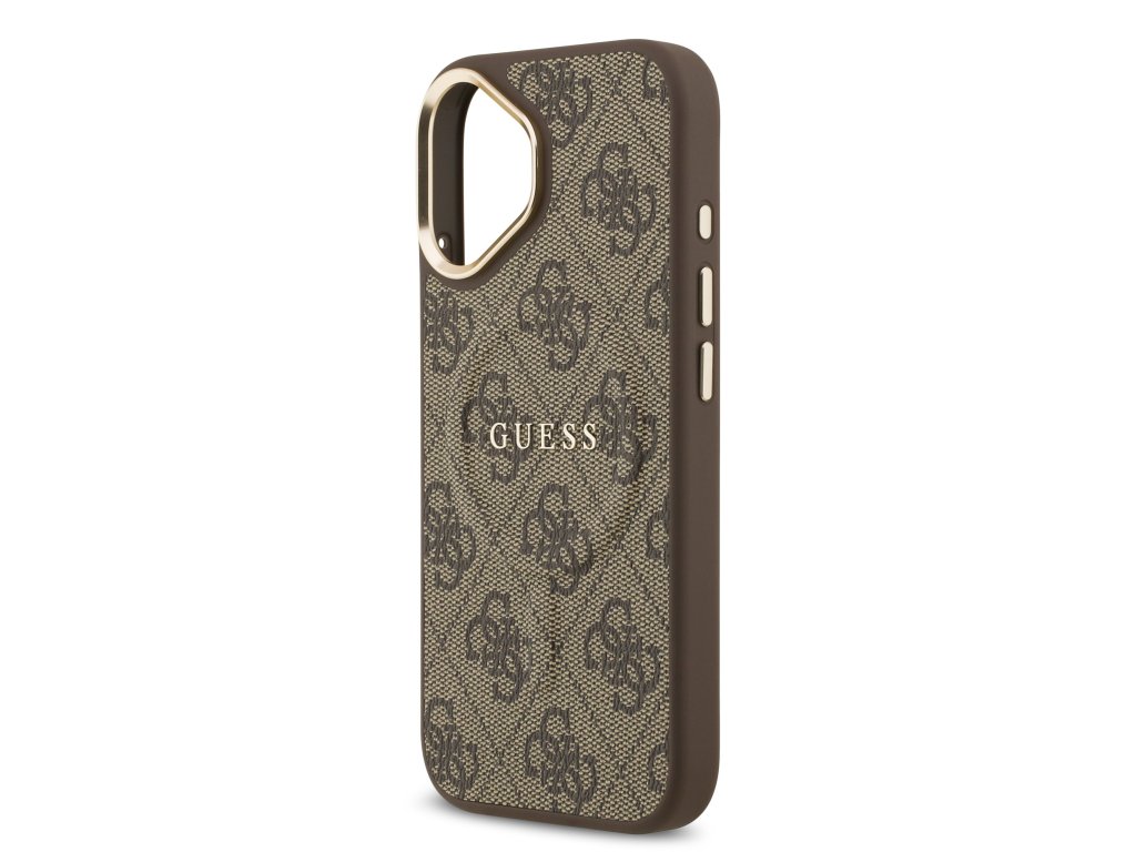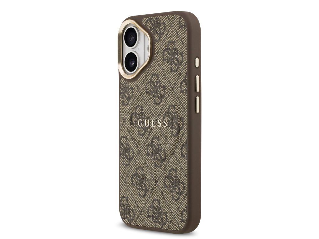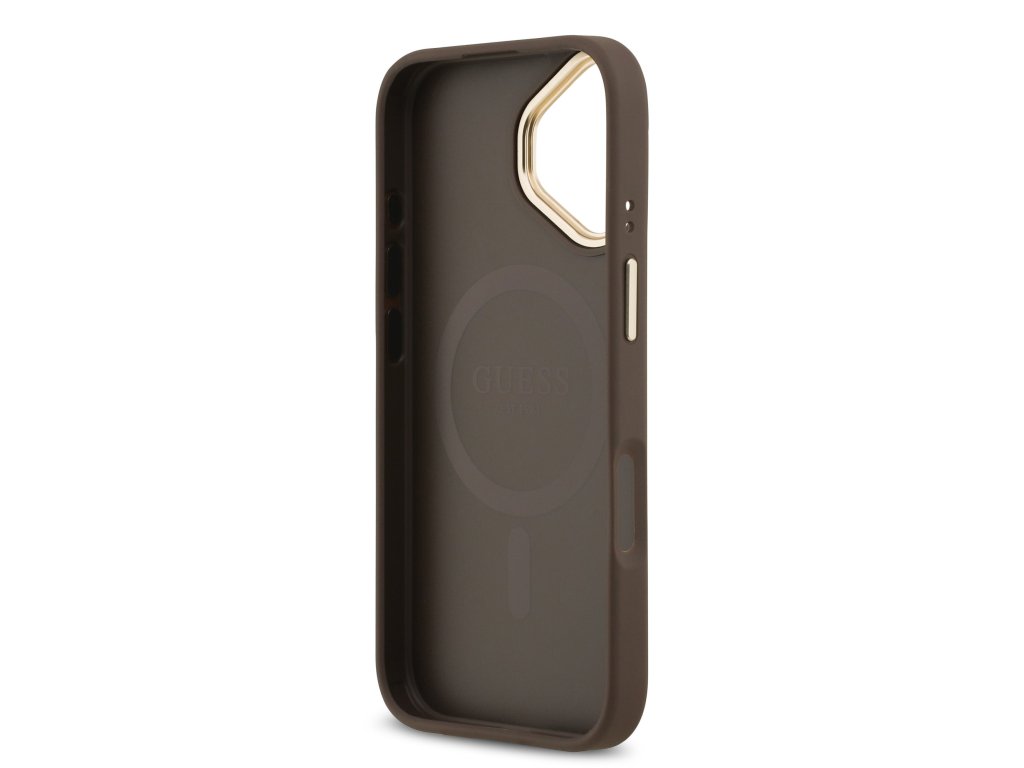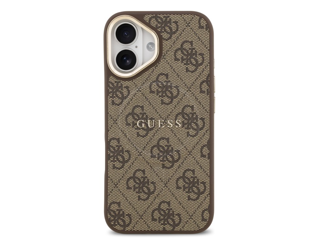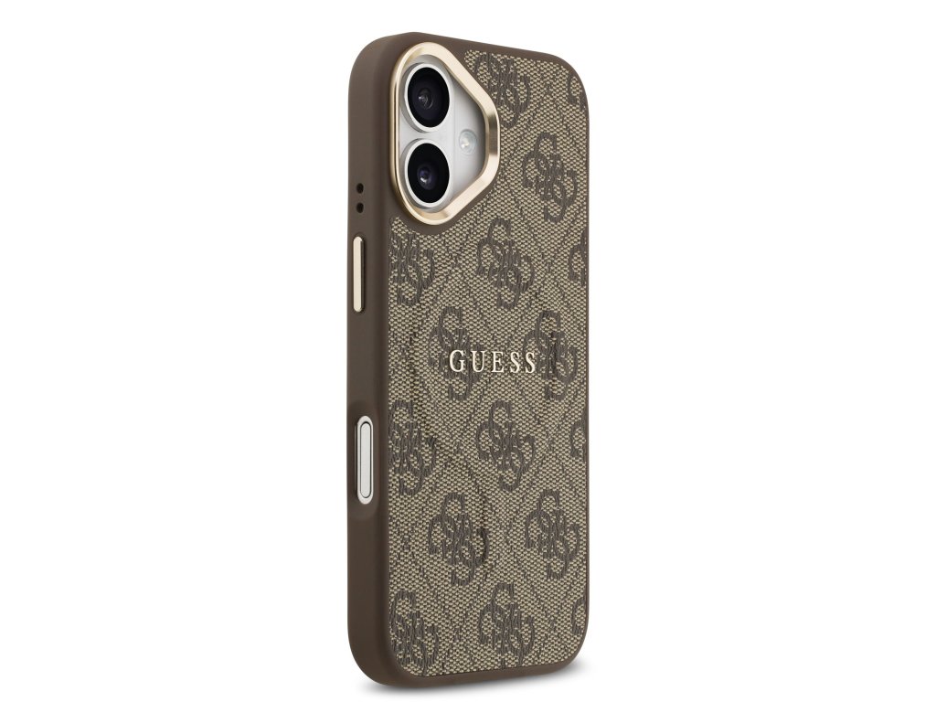 Guess PU Leather 4G Gold Frame MagSafe Zadní Kryt pro iPhone 17 Brown