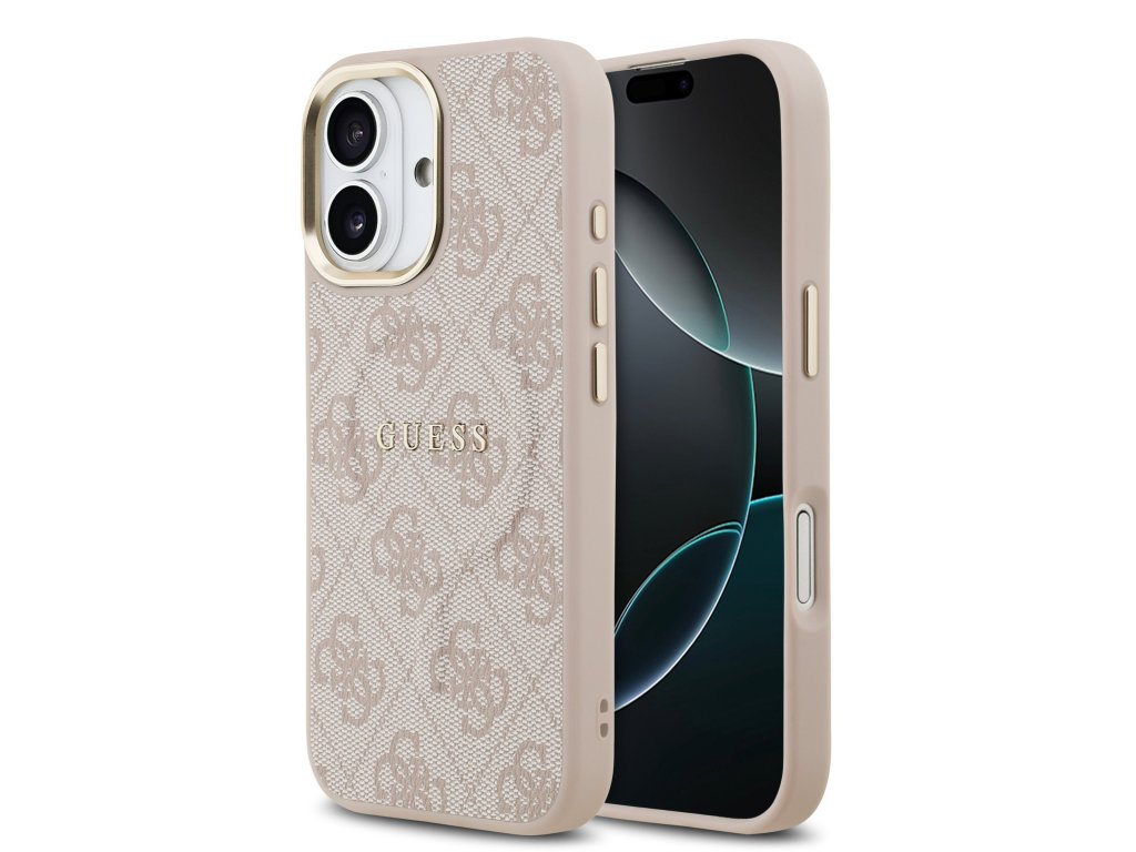 Guess PU Leather 4G Gold Frame MagSafe Zadní Kryt pro iPhone 17 Pink