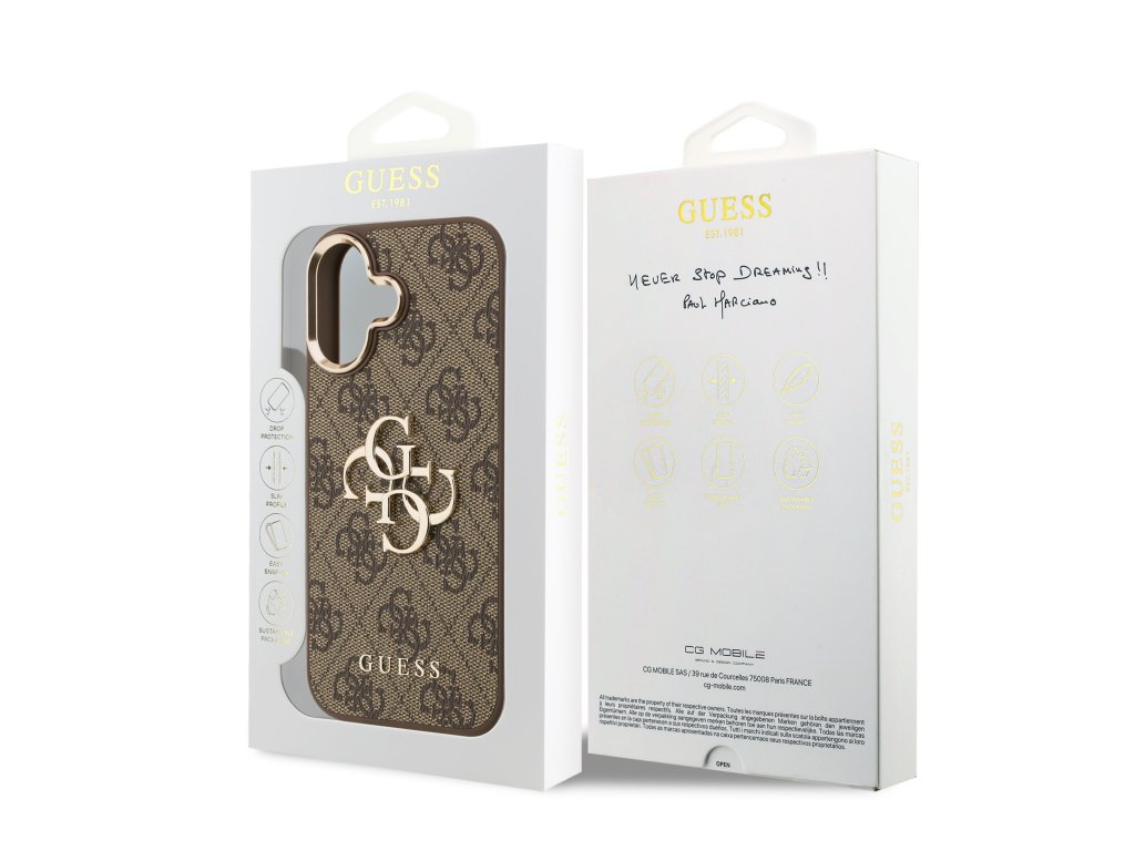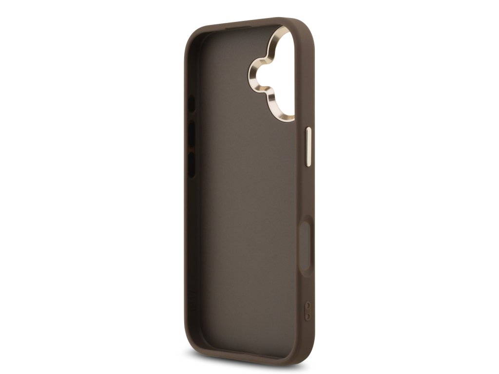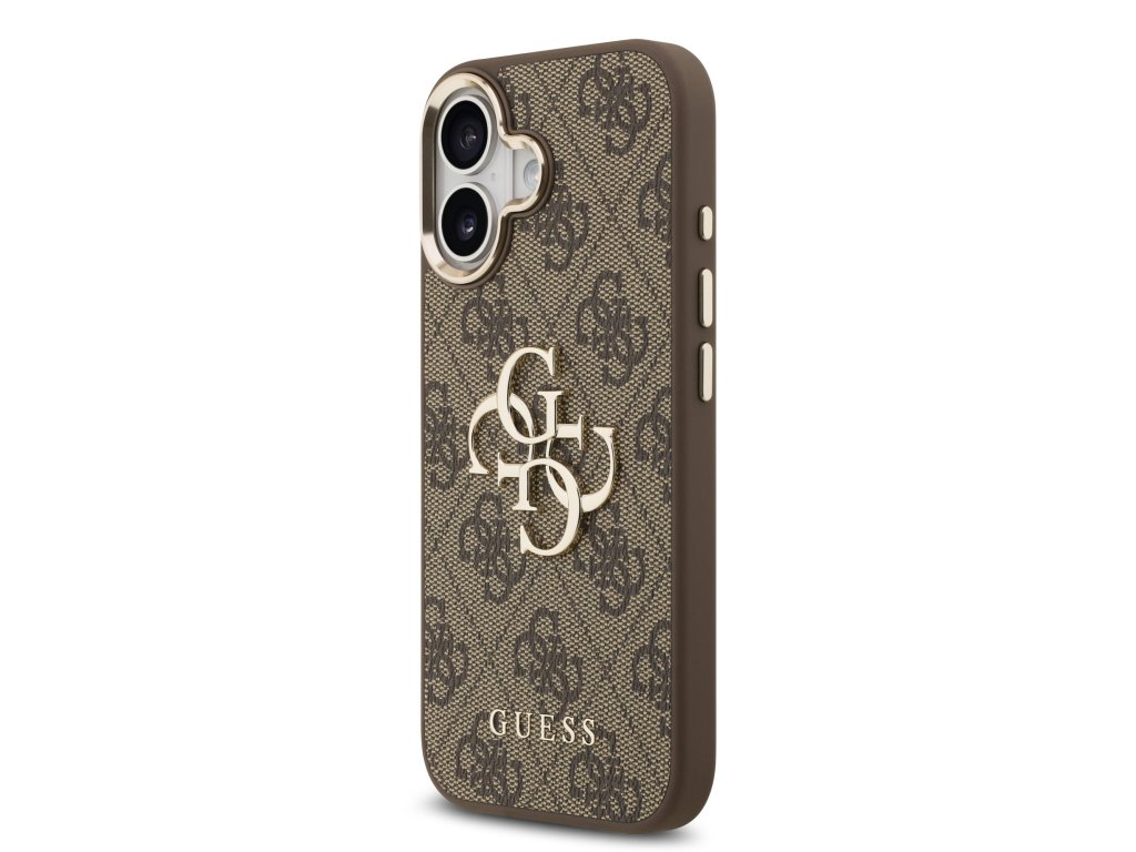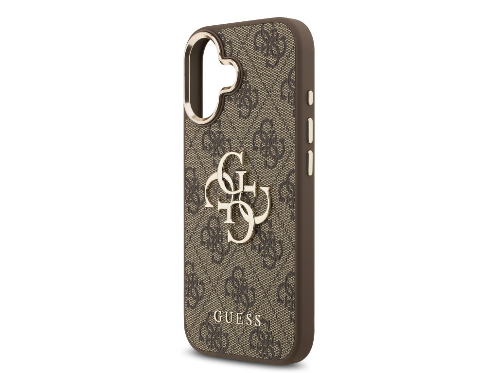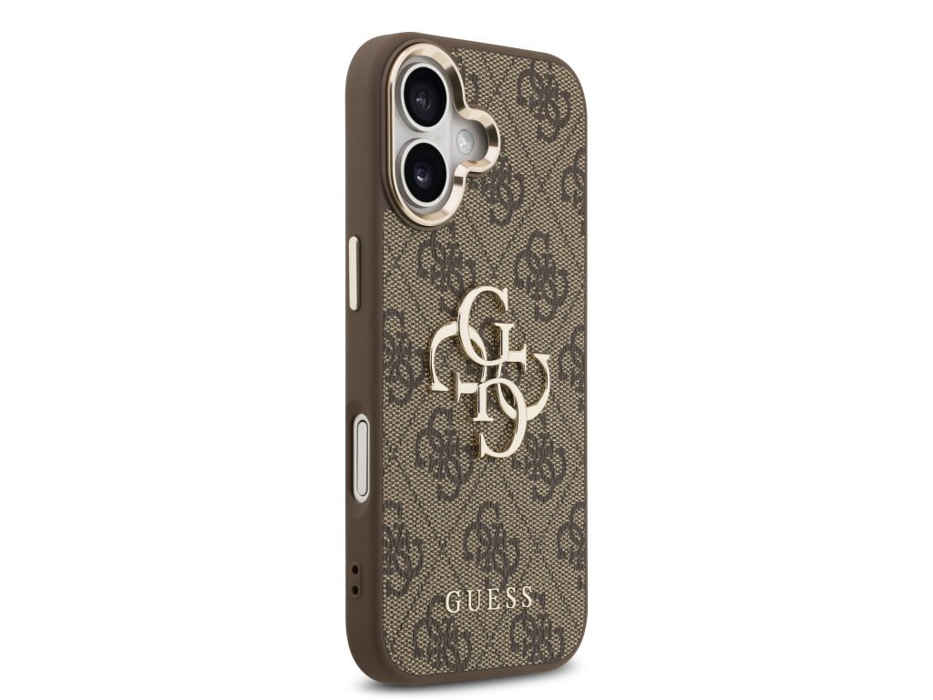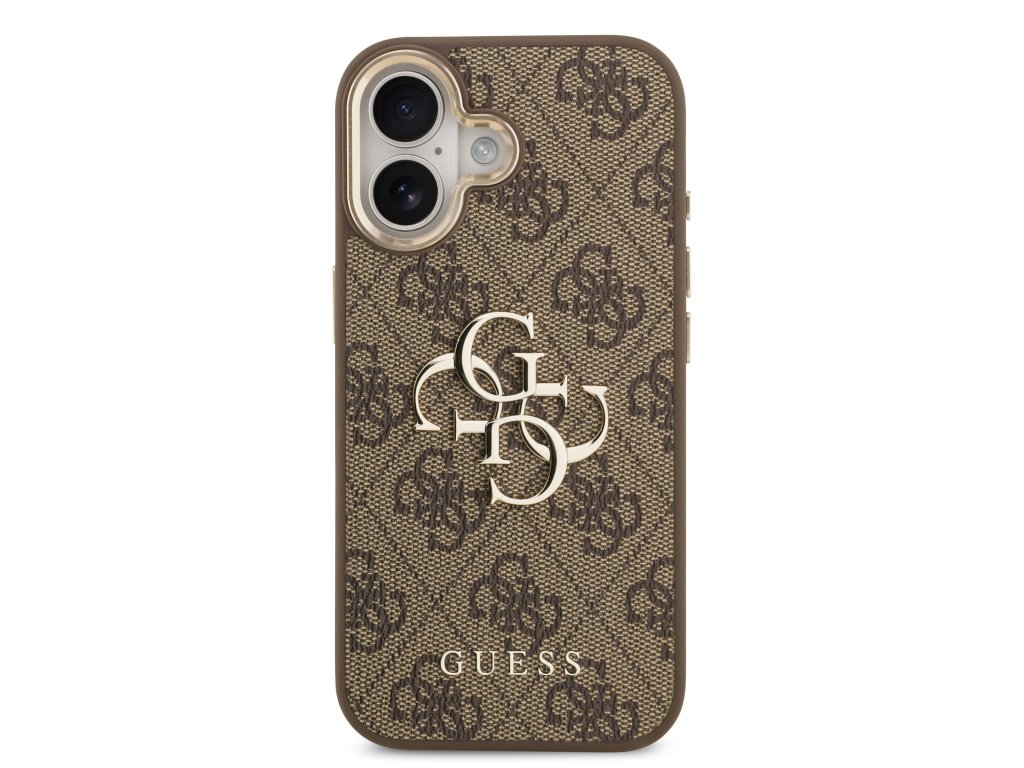 Guess PU Leather 4G Metal Logo Gold Frame Zadní Kryt pro iPhone 17 Brown