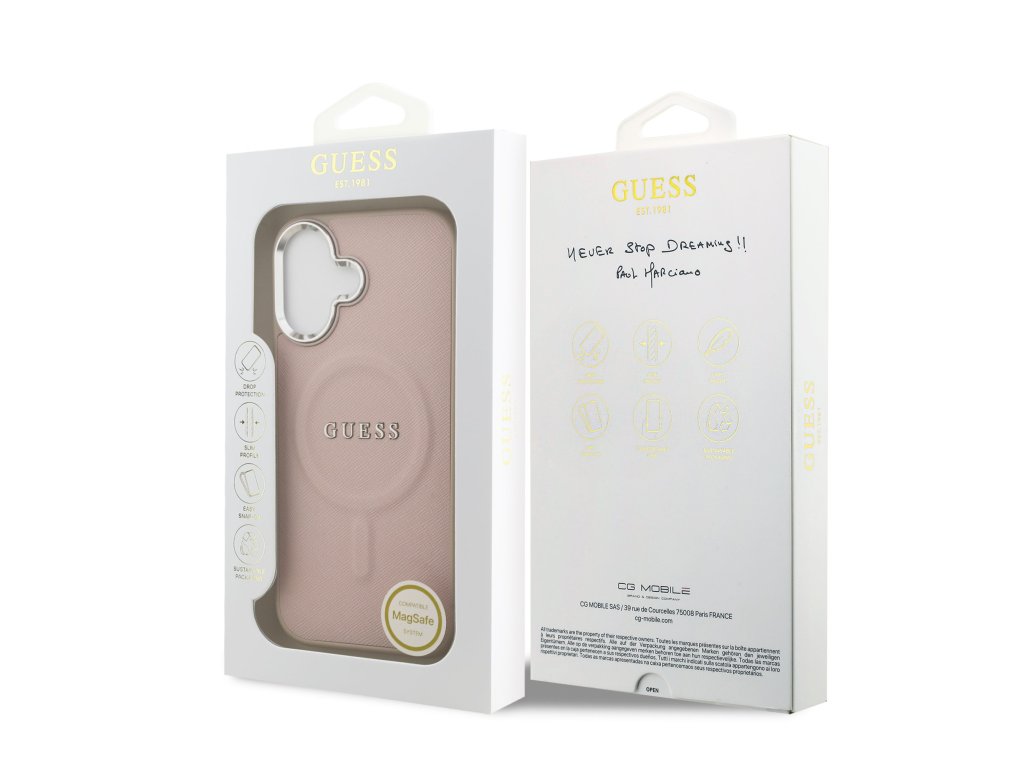 Guess PU Saffiano MagSafe zadní kryt je dokonalý doplněk pro váš telefon i váš outfit, který kombinuje funkčnost a styl v jednom.Je vyrobený z lehké a odolného PU s texturou zrnité kůže a nabízí skvělou ochranu a pohodlí při používání.
