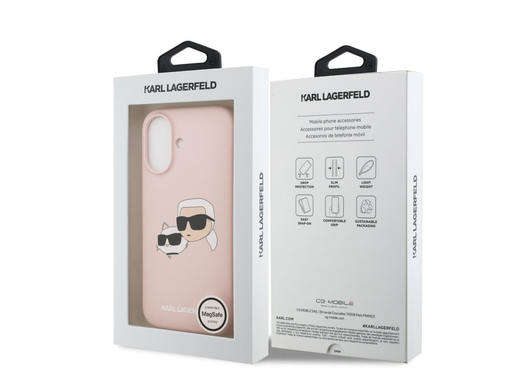 Design krytu nese ikonické vyobrazení Karla Lagerfelda a jeho kočky Choupette, což z něj činí nejen praktický, ale i stylový doplněk, který skvěle doplní váš outfit.