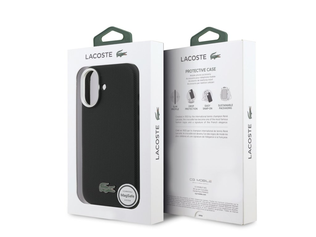 Lacoste Iconic Petit Pique Metal Logo MagSafe zadní kryt je dokonalý doplněk pro váš telefon i váš outfit, který kombinuje funkčnost a styl v jednom.Je vyrobený z lehké a odolného PU materiáliu a nabízí skvělou ochranu a pohodlí při používání. Vnitřní výstelka z jemného mikrovlákna zajišťuje, že váš telefon bude chráněn před poškrábáním a drobnými poškozeními.