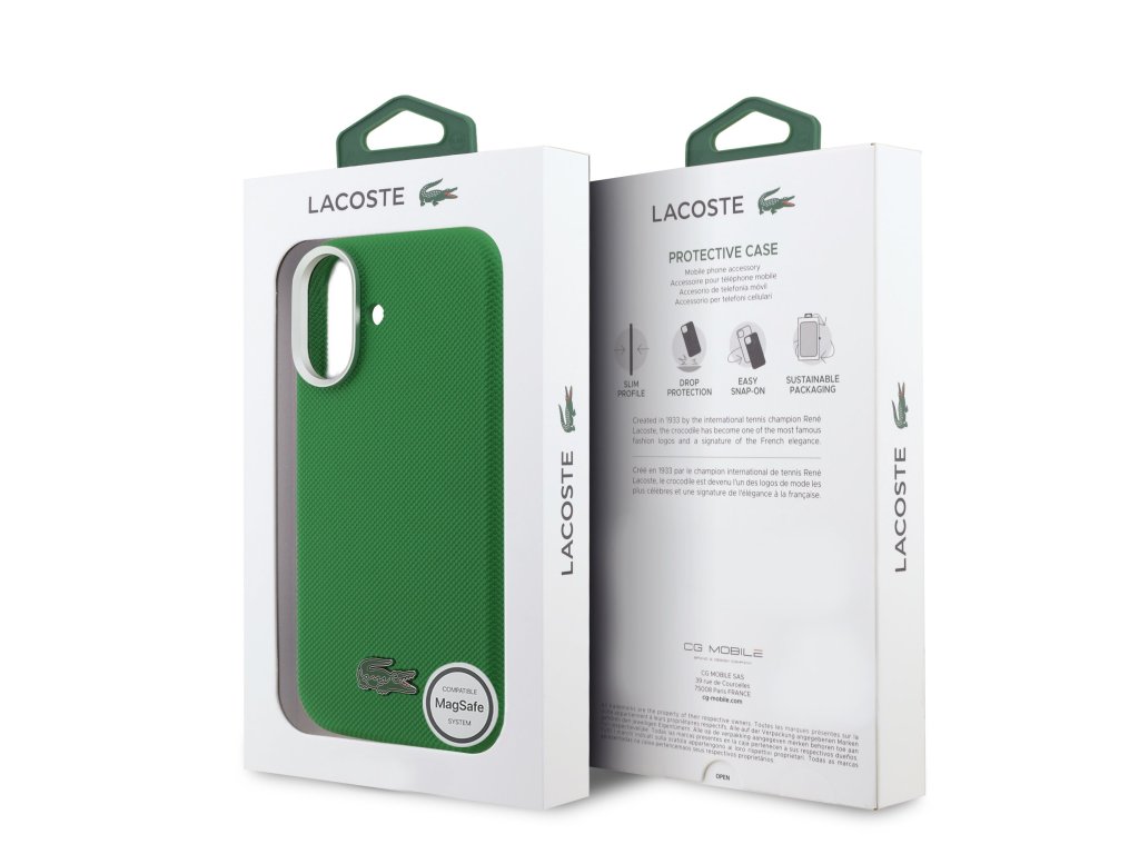 Lacoste Iconic Petit Pique Metal Logo MagSafe zadní kryt je dokonalý doplněk pro váš telefon i váš outfit, který kombinuje funkčnost a styl v jednom.Je vyrobený z lehké a odolného PU materiáliu a nabízí skvělou ochranu a pohodlí při používání. Vnitřní výstelka z jemného mikrovlákna zajišťuje, že váš telefon bude chráněn před poškrábáním a drobnými poškozeními.