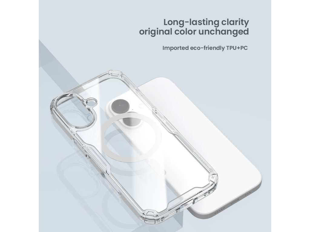Nillkin Nature TPU PRO Magnetic ochranný kryt telefonu s integrovaným magnetem pro Apple MagSafe příslušenství.Kryt je oproti klasickému Nature TPU vybaven magnetem a je vyrobený z kombinace dvou materiálů PC/TPU.