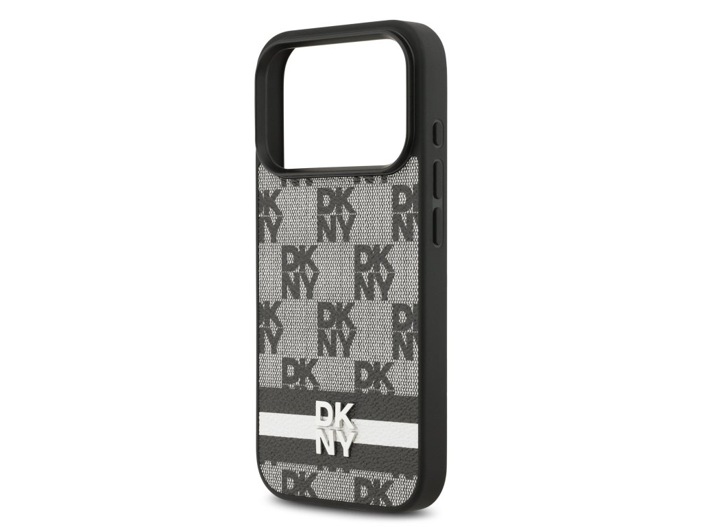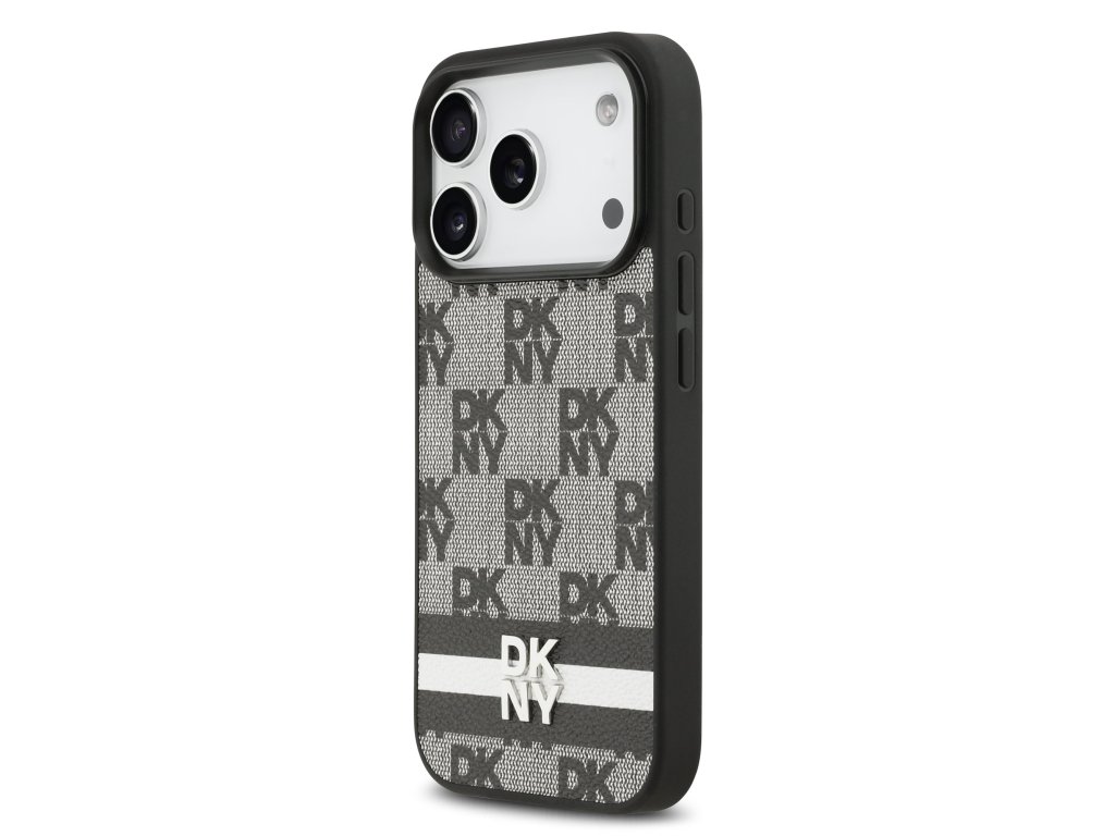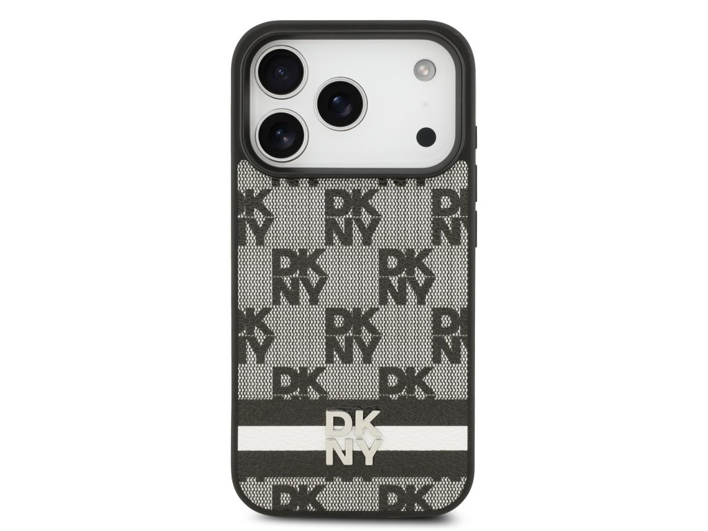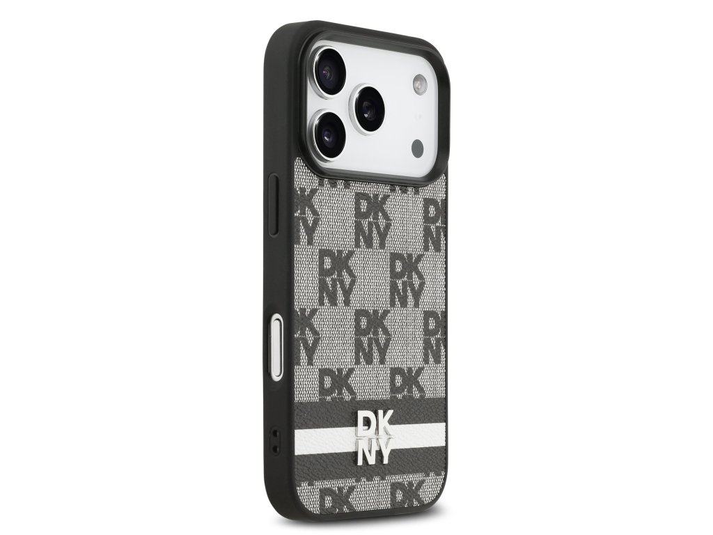 DKNY PU Leather Checkered Pattern and Stripe Zadní Kryt pro iPhone 17 Pro Black