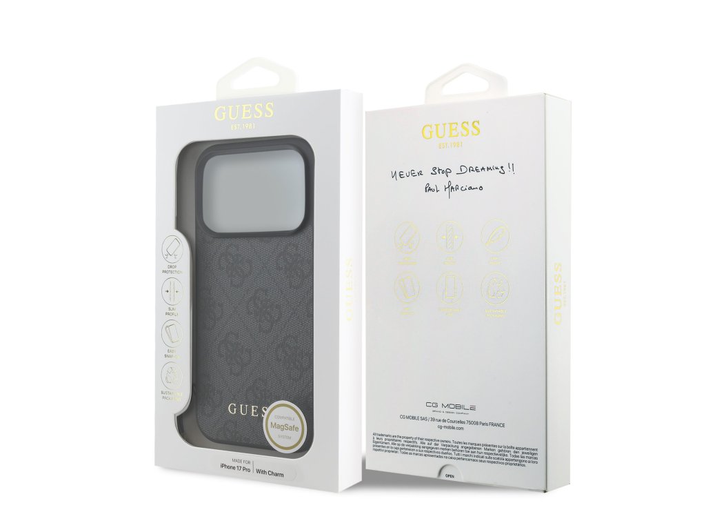 Guess 4G Charm MagSafe Zadní Kryt pro iPhone 17 Pro Tone on Tone Grey