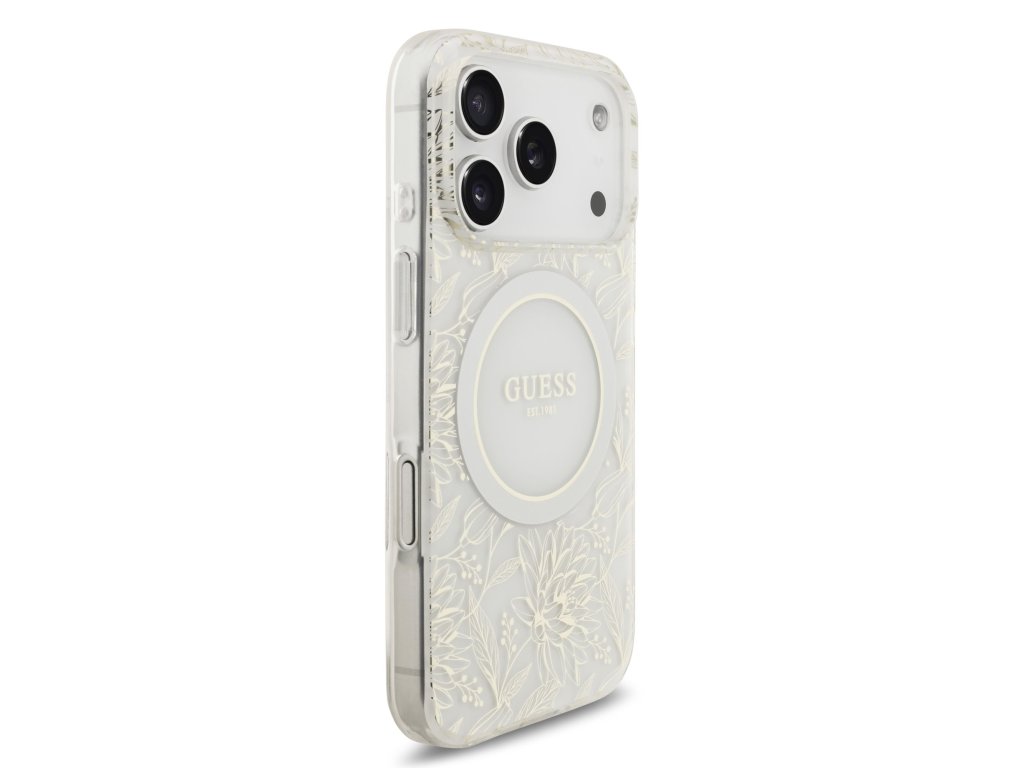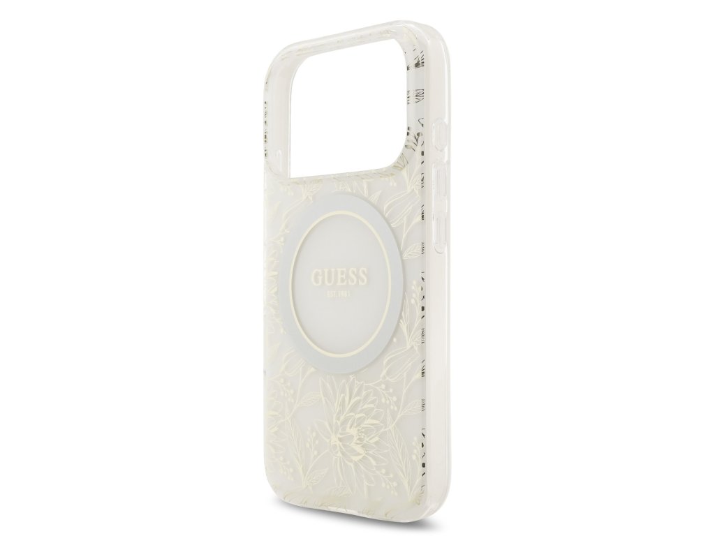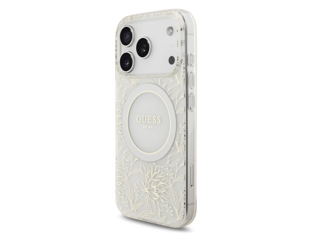 Guess IML Flowers Allover Strap MagSafe Zadní Kryt pro iPhone 17 Pro White