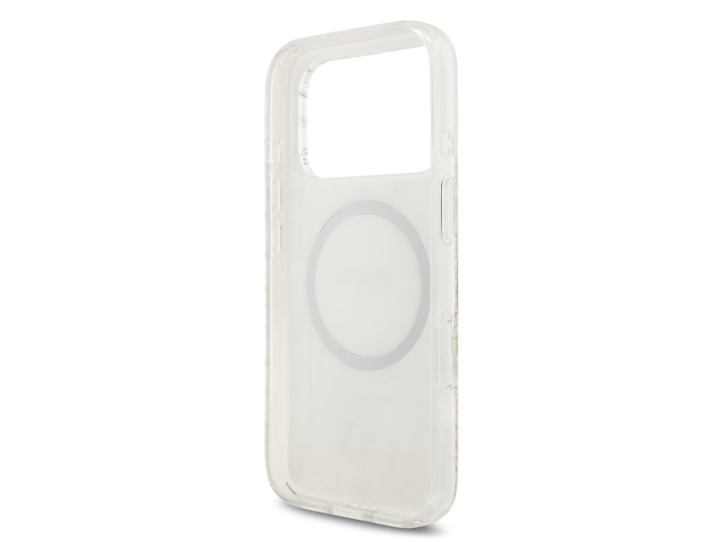 Guess IML Allover Pearl Strap MagSafe zadní kryt na telefon je skvělým doplňkem pro všechny milovníky stylu a praktičnosti.Tento kryt je vyroben z kombinace pevného PC plastu na zadní straně a TPU měkkého plastu na bocích, což vytváří dokonalou symbiózu odolnosti a pohodlí.