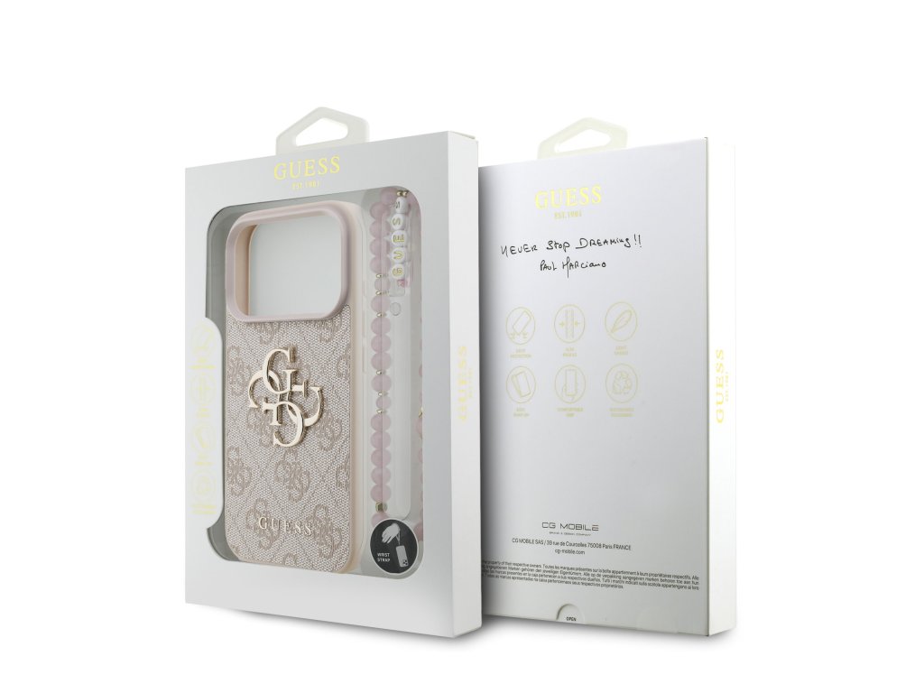 Prémiový zadní kryt Guess PU 4G Metal Logo Strap se vyznačuje elegantním, charakteristickým 4G vzorem, doplněným o logo GUESS.Kryt je vyrobený z lehkého a odolného polyuretanu (PU) s povrchovou úpravou z PU kůže a nabízí tak nejen skvělou ochranu telefonu, ale také pohodlí při používání.