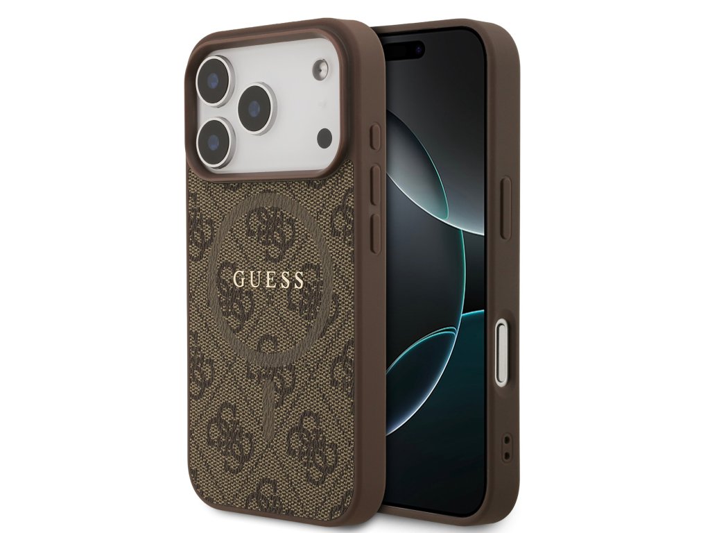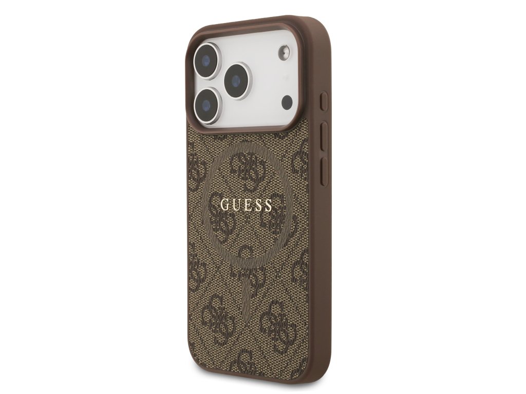 Guess PU Leather 4G Colored Ring MagSafe Zadní Kryt pro iPhone 17 Pro Brown