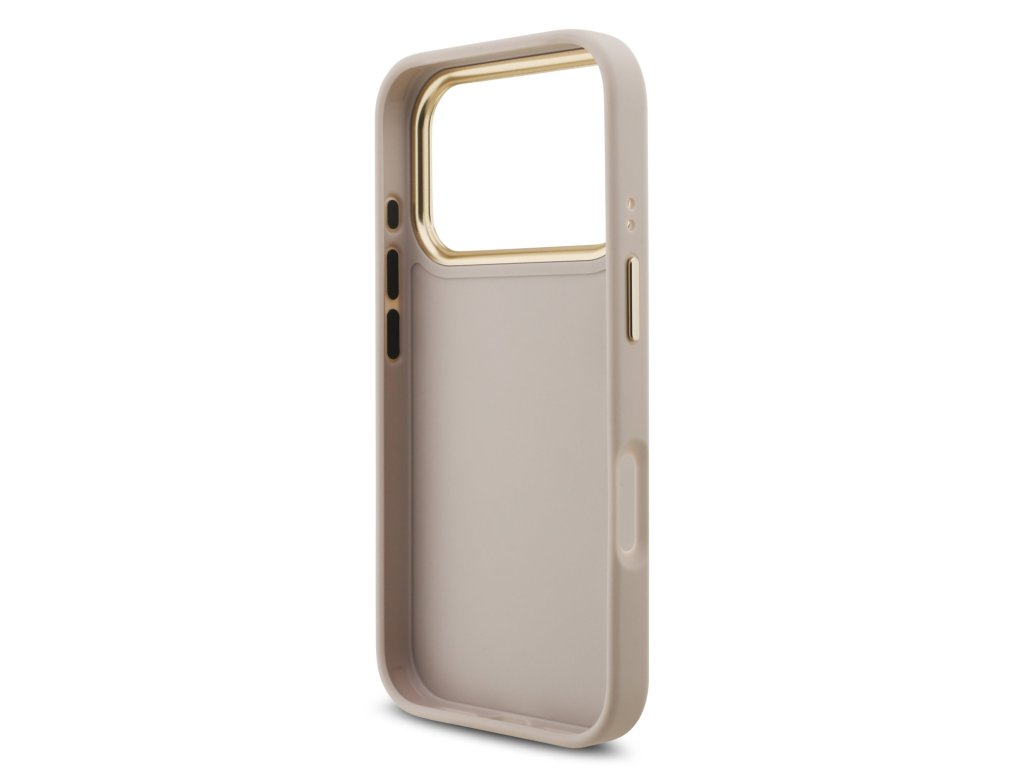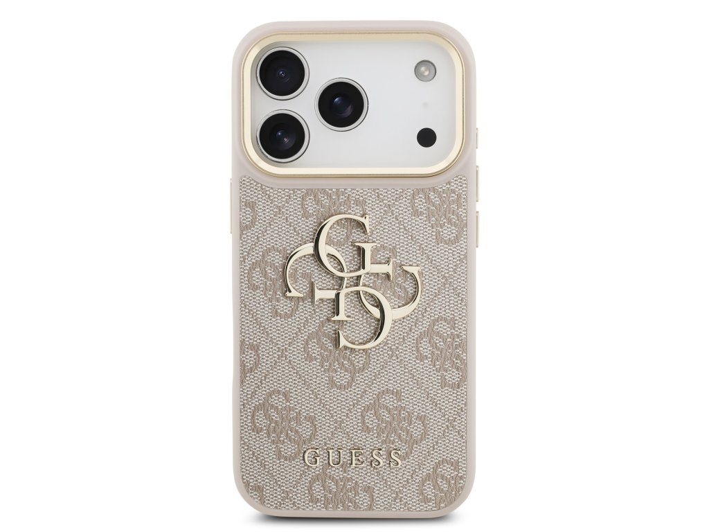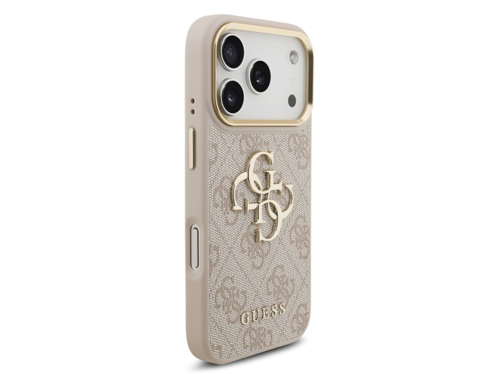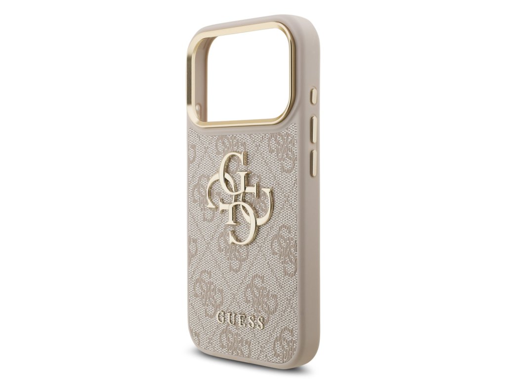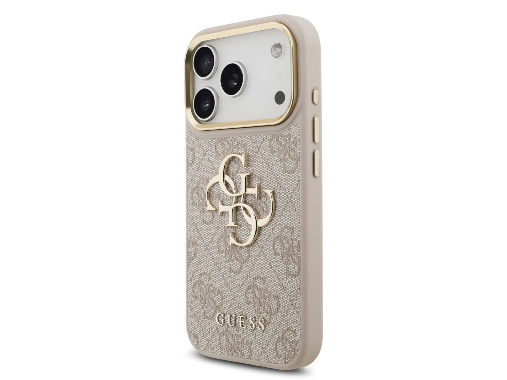 Guess PU Leather 4G Metal Logo Gold Frame Zadní Kryt pro iPhone 17 Pro Pink