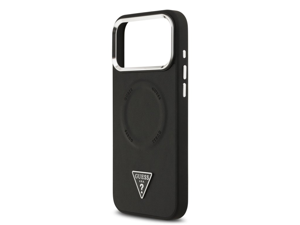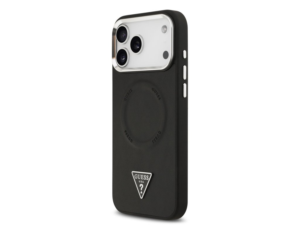 Guess PU Leather Triangle Logo MagSafe Zadní Kryt pro iPhone 17 Pro Black