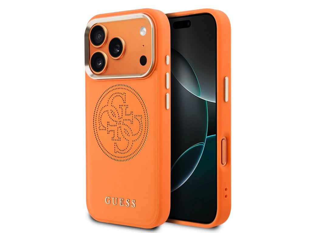 Guess PU Perforated 4G Logo MagSafe Zadní Kryt pro iPhone 17 Pro Orange