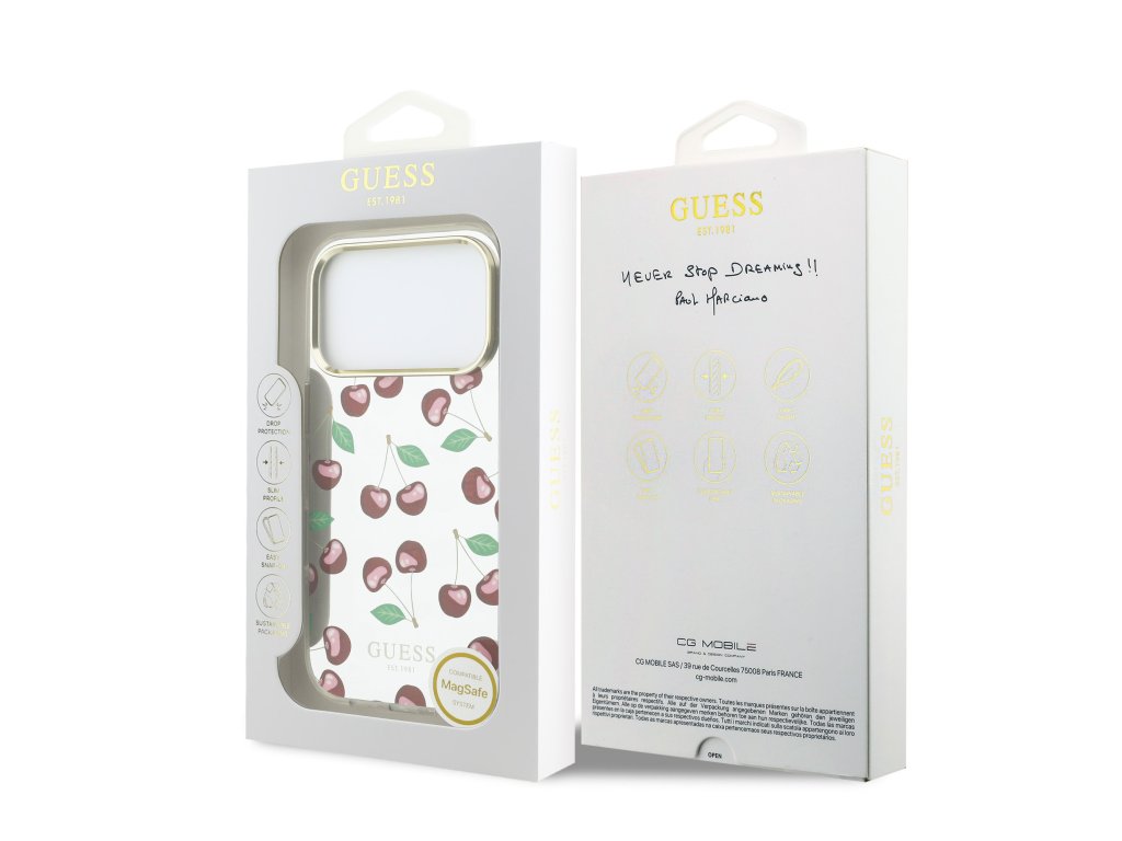 Guess TPU Glitter Cherry MagSafe zadní kryt je dokonalý doplněk pro váš telefon i váš outfit, který kombinuje funkčnost a styl v jednom.Je vyrobený z odolného TPU materiálu, který zajišťuje dlouhou životnost a spolehlivou ochranu při každodenním používání.