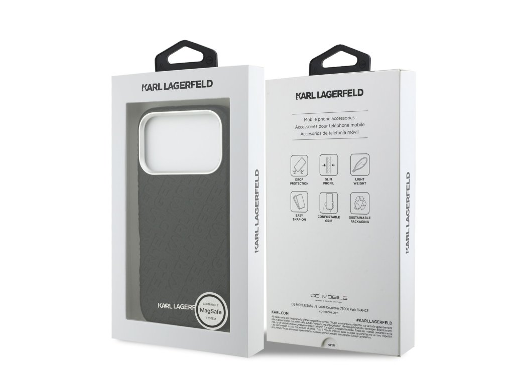 Karl Lagerfeld Grained PU Repeated Logo MagSafe Zadní Kryt pro iPhone 17 Pro Black