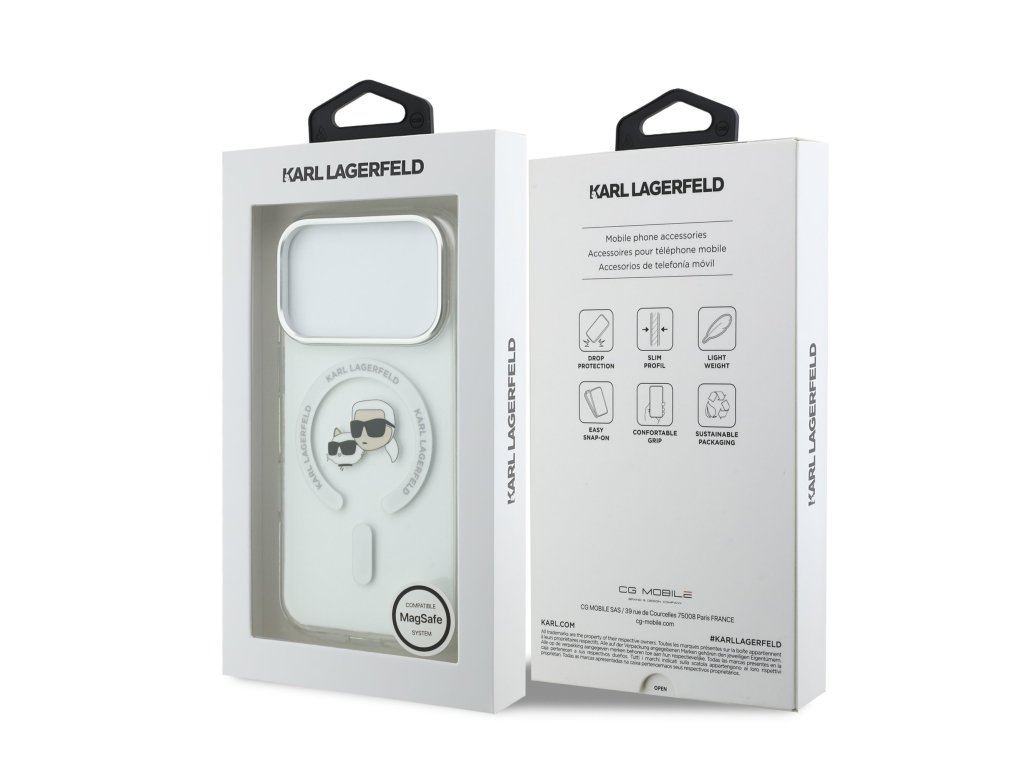 Karl Lagerfeld IML K&CH Heads Metal Frame MagSafe zadní kryt je dokonalý doplněk pro váš telefon i váš outfit, který kombinuje funkčnost a styl v jednom.Tento kryt je vyroben z kombinace pevného PC plastu na zadní straně a TPU měkkého plastu na bocích, což vytváří dokonalou symbiózu odolnosti a pohodlí.