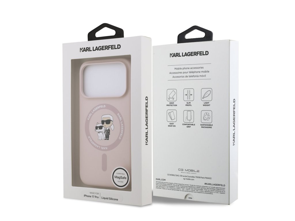 Karl Lagerfeld Liquid Silicone Karl and Choupette MagSafe Zadní Kryt pro iPhone 17 Pro Pink