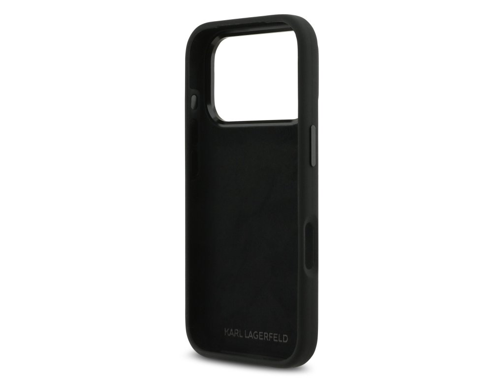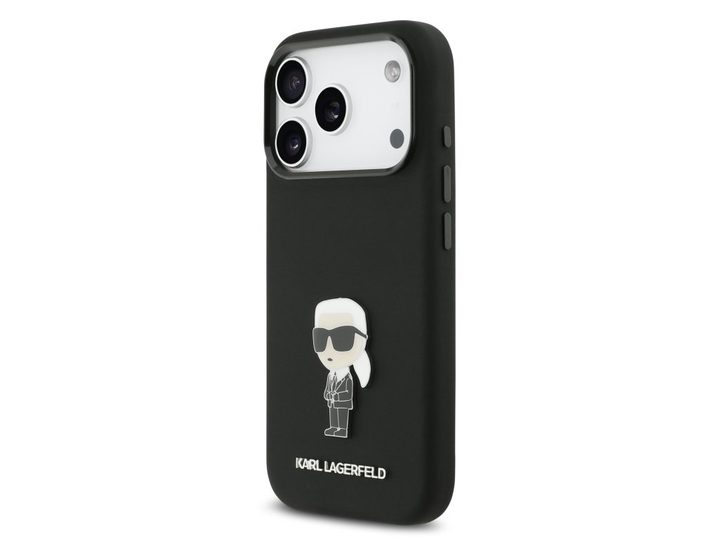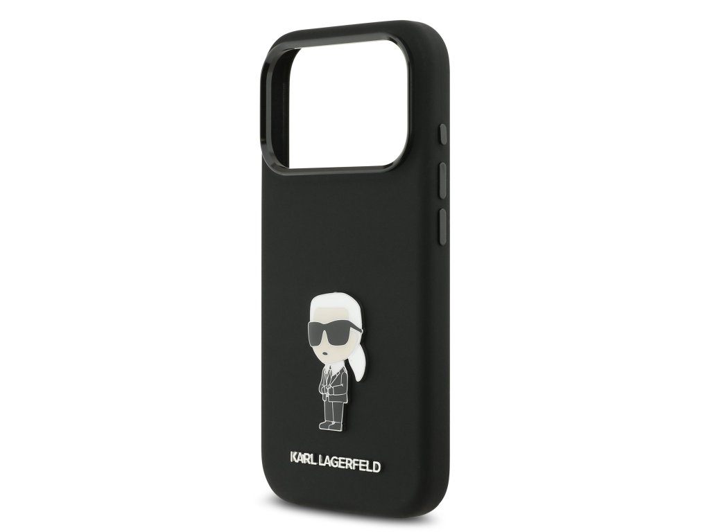Karl Lagerfeld Liquid Silicone Metal Ikonik Zadní Kryt pro iPhone 17 Pro Black