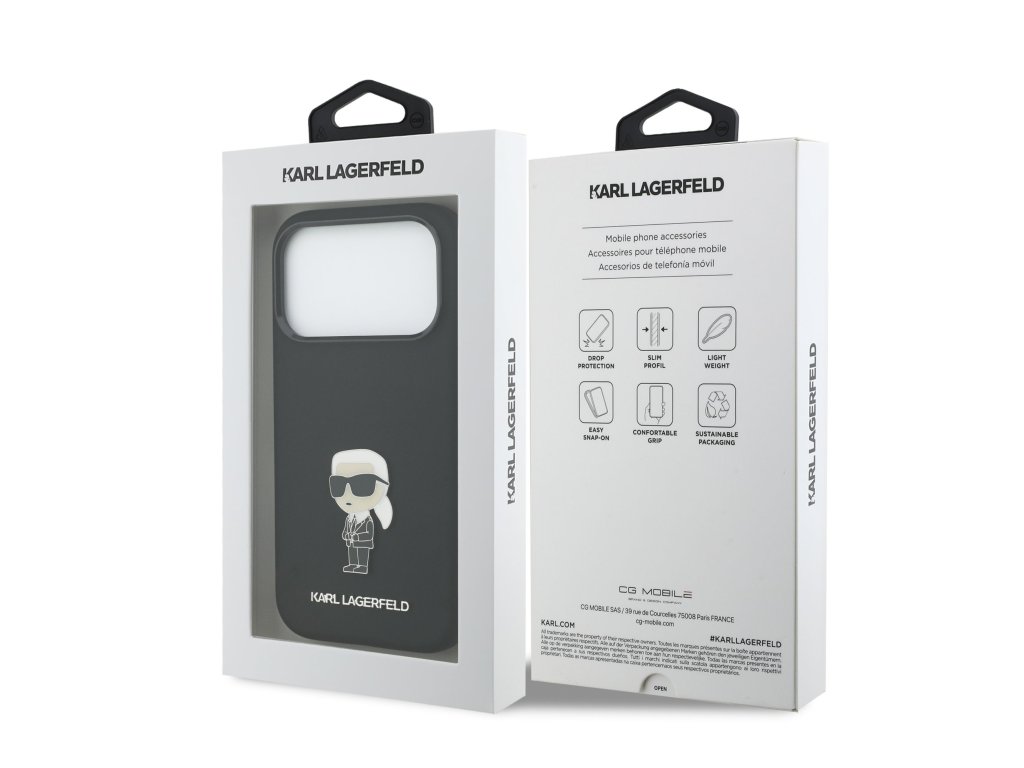Elegantní kovové Ikonik logo s nápisem Karl Lagerfeld na zadní straně krytu dodává tomuto doplňku luxusní vzhled a stane se nedílnou součástí vašeho outfitu.