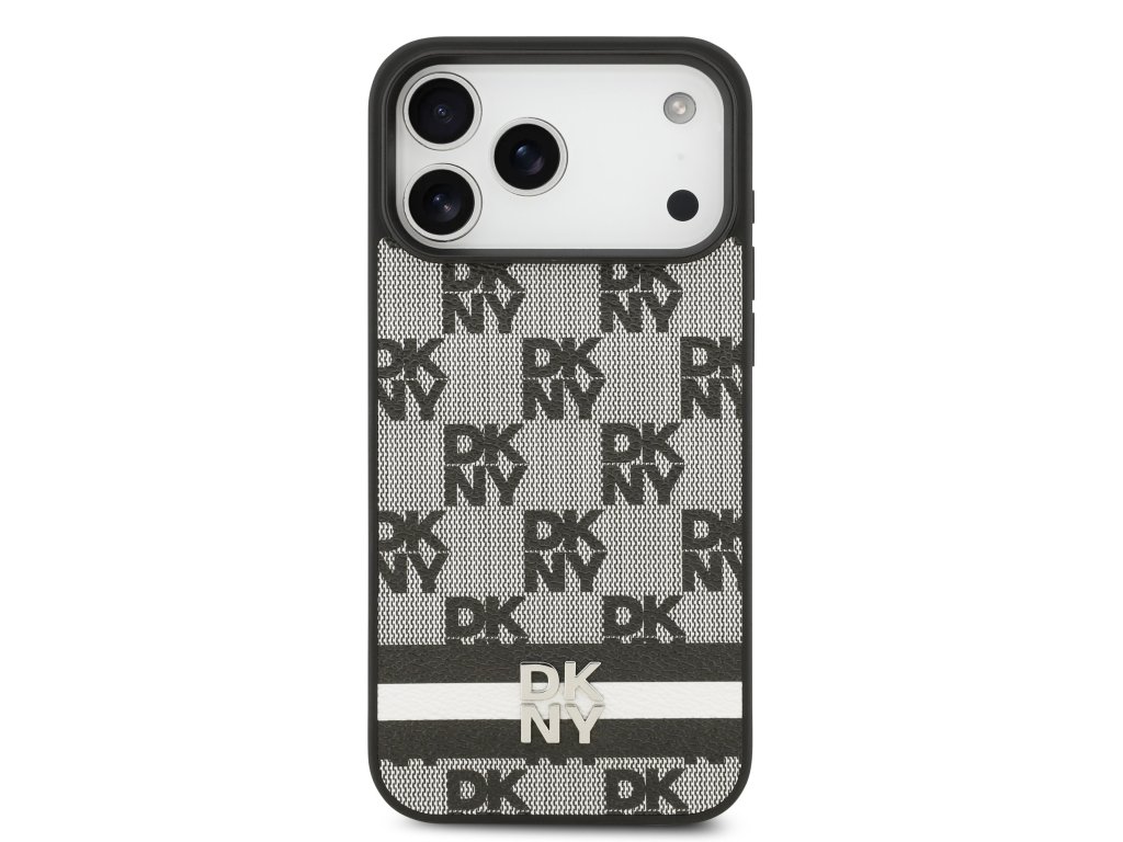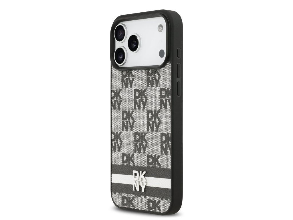 DKNY PU Leather Checkered Pattern and Stripe Zadní Kryt pro iPhone 17 Pro Max Black
