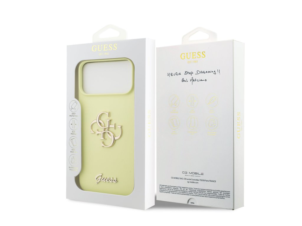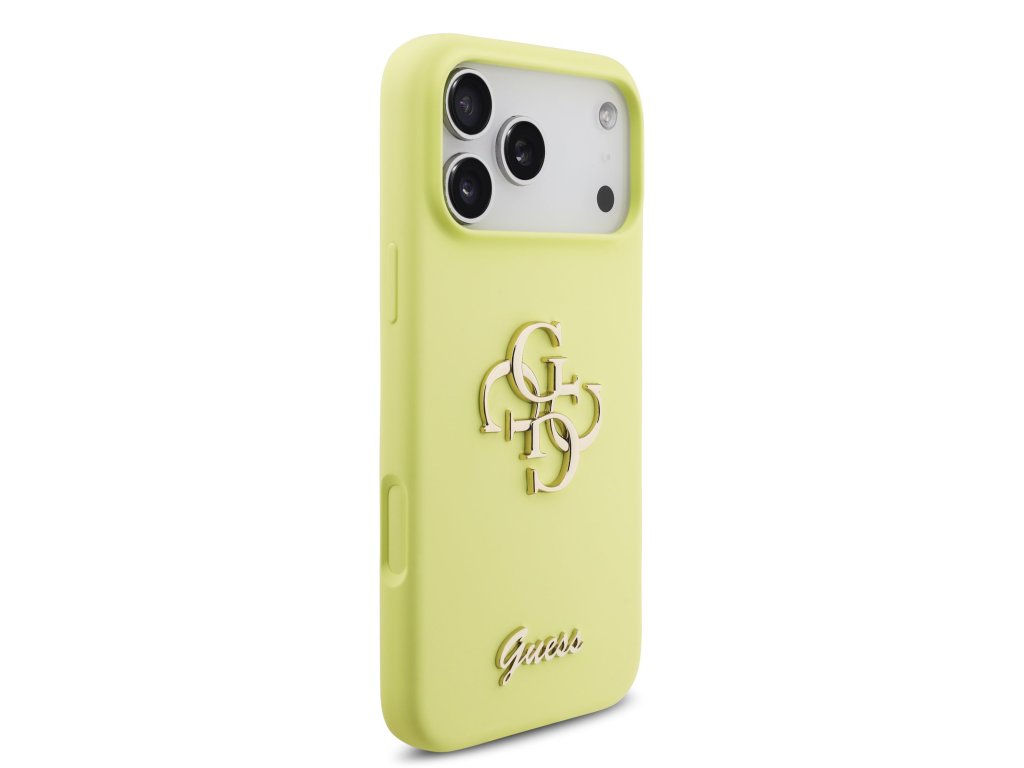 Guess Liquid Silicone 4G Metal Logo Zadní Kryt pro iPhone 17 Pro Max Yellow