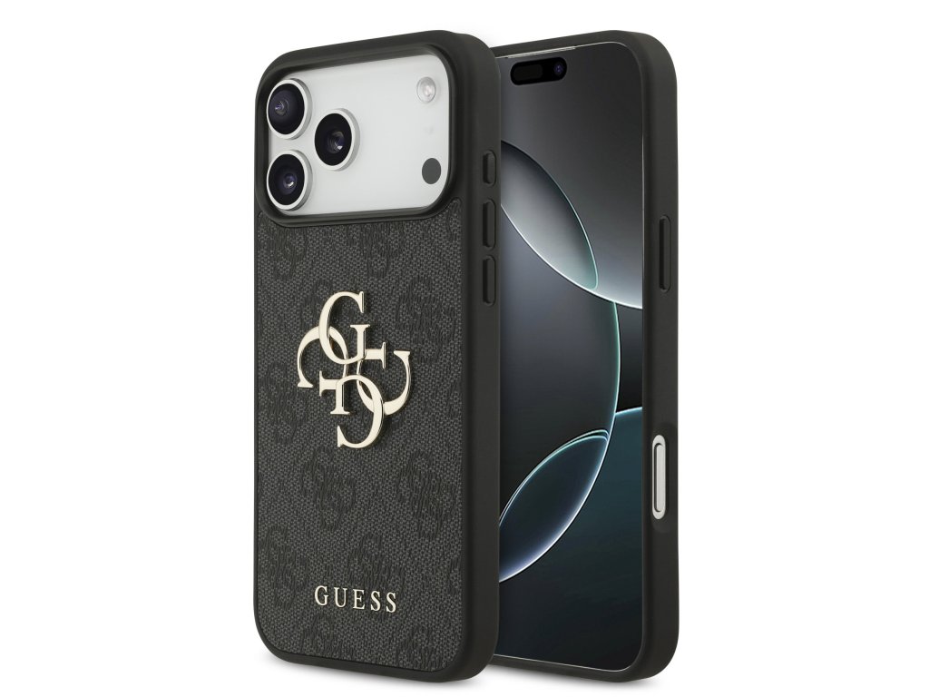 Guess PU 4G Metal Logo Zadní Kryt pro iPhone 17 Pro Max Grey