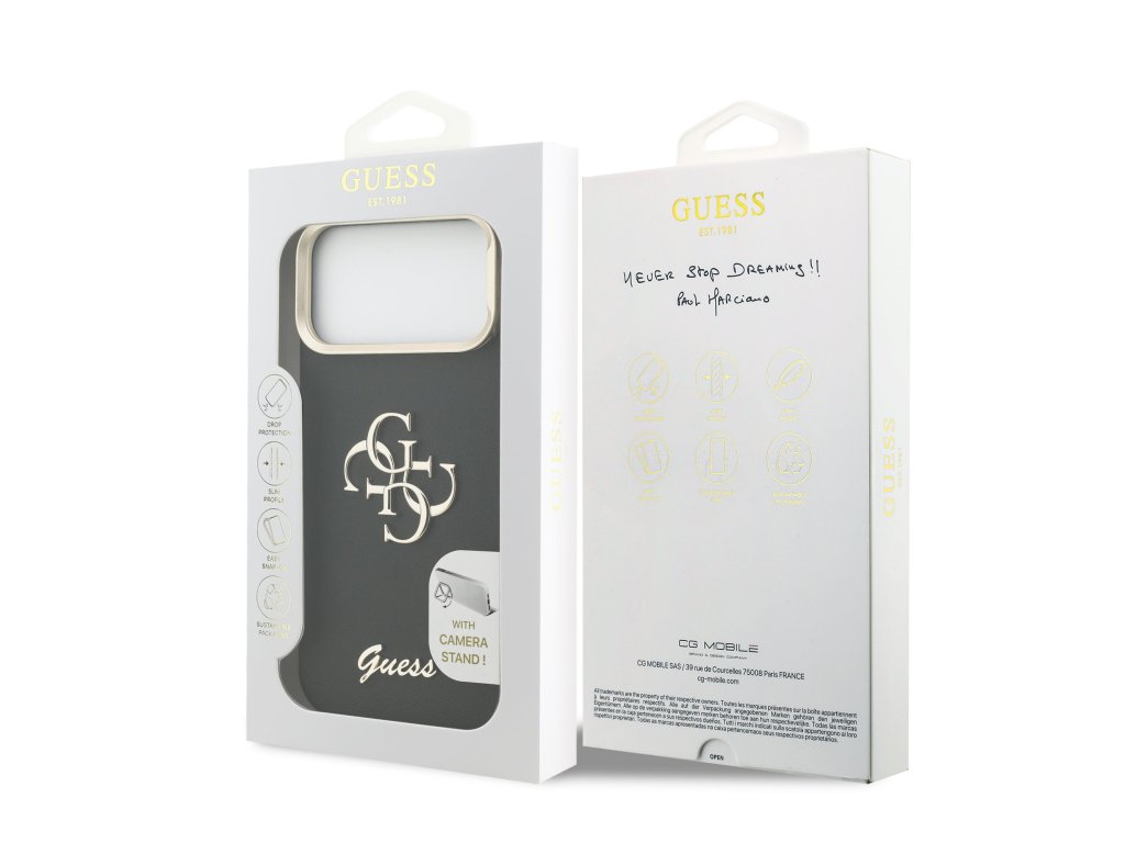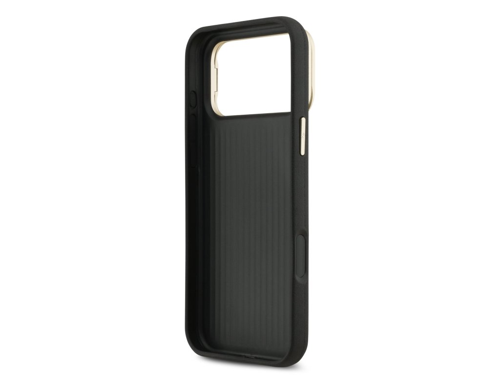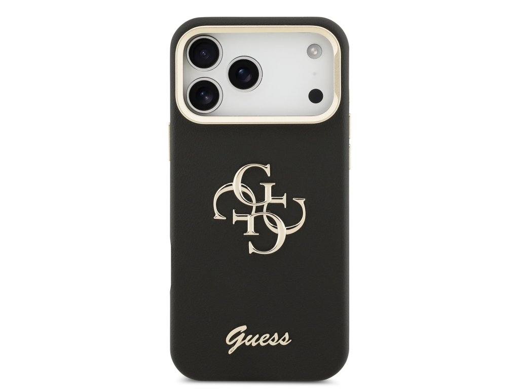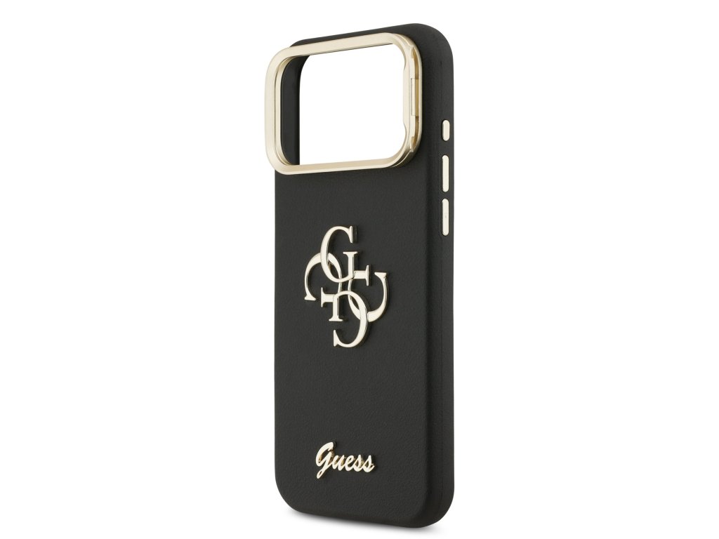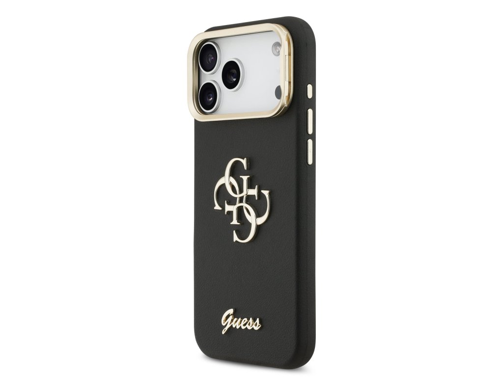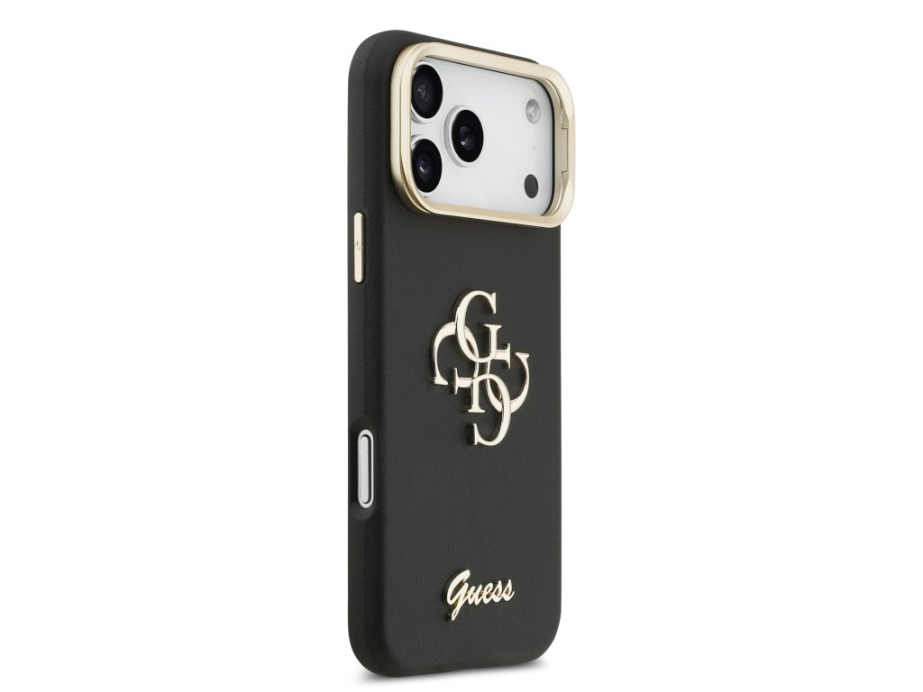 Guess PU Grained 4G Logo Stand Camera Frame Zadní Kryt pro iPhone 17 Pro Max Black