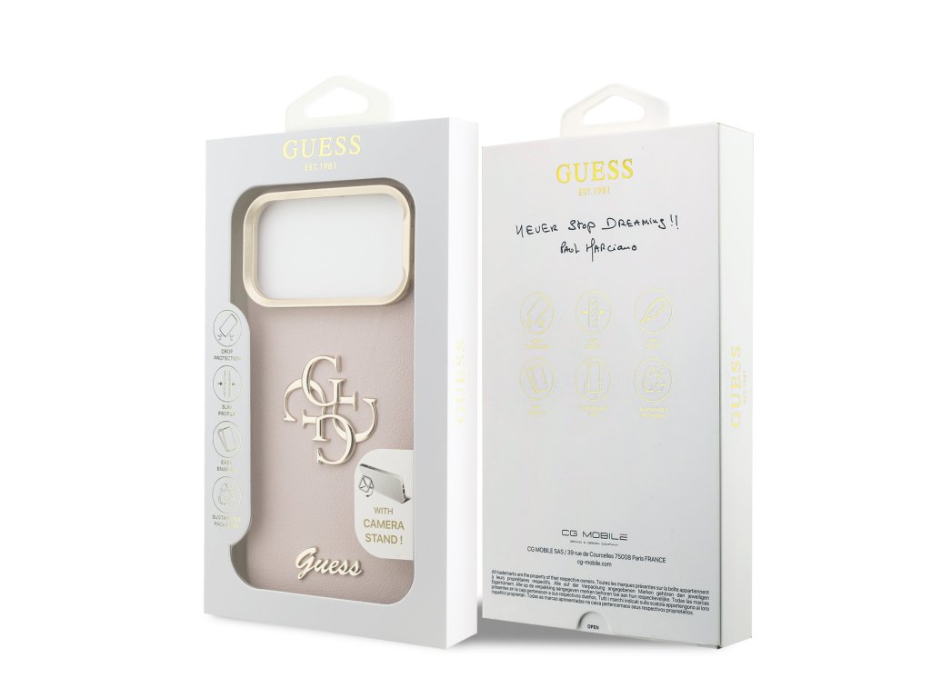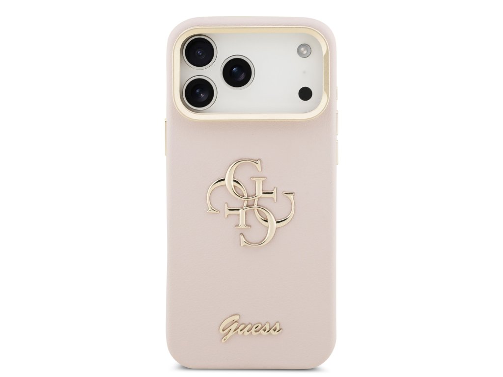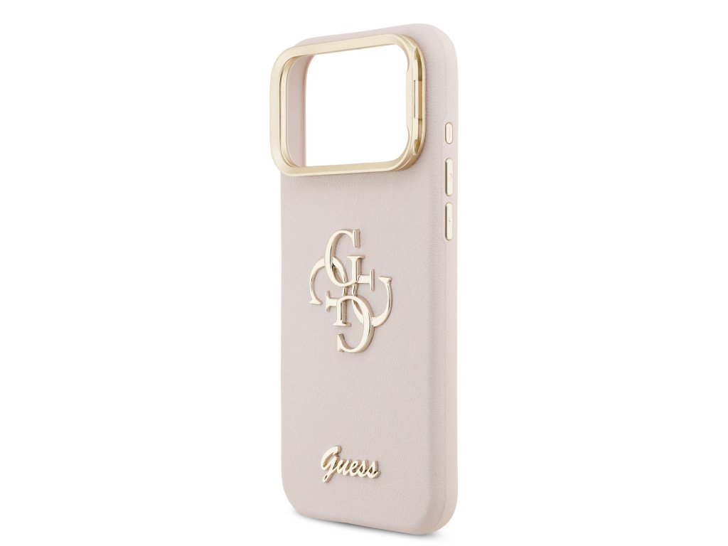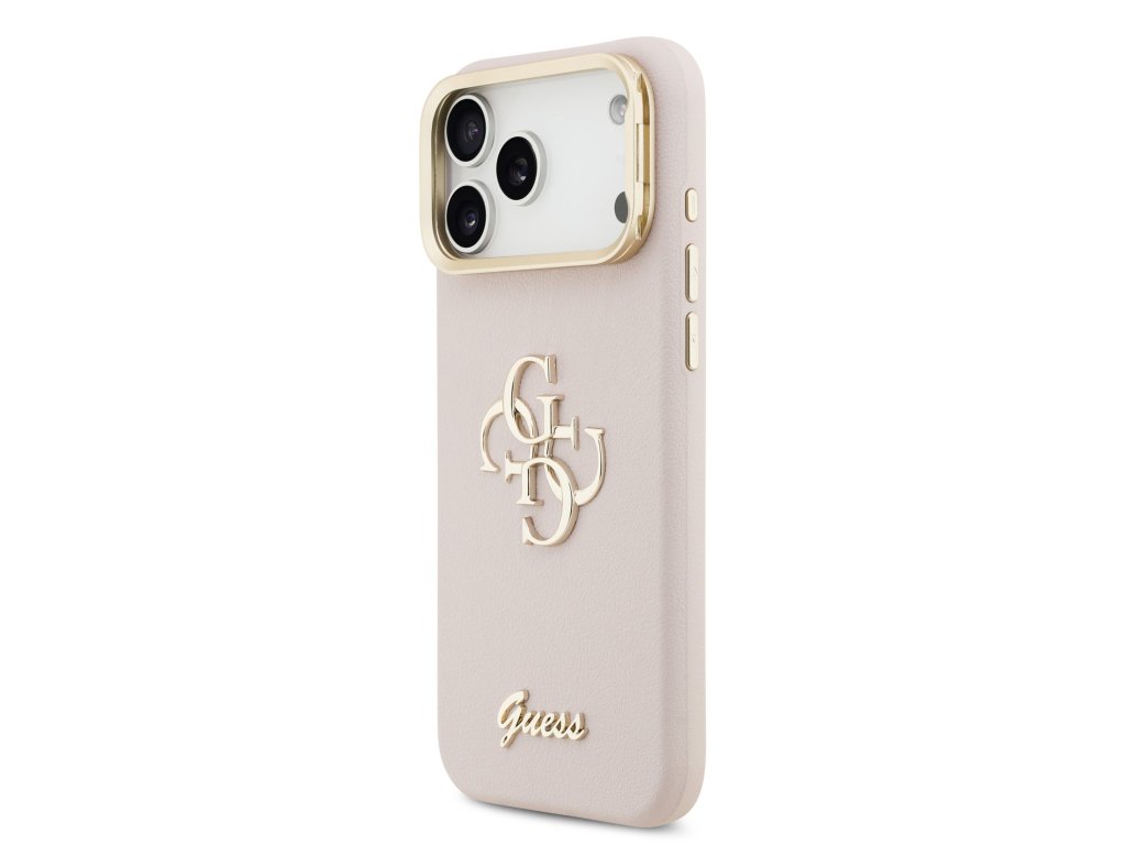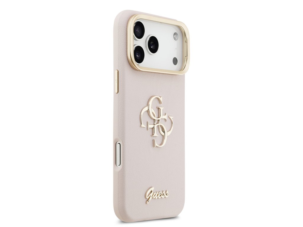 Guess PU Grained 4G Logo Stand Camera Frame Zadní Kryt pro iPhone 17 Pro Max Pink