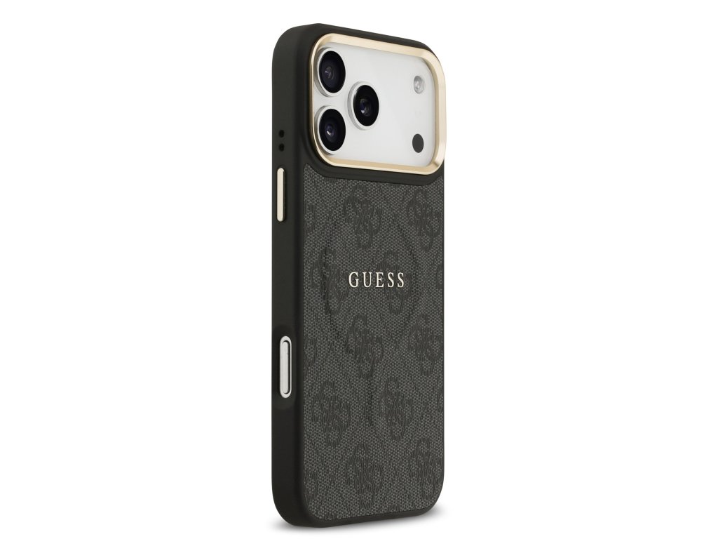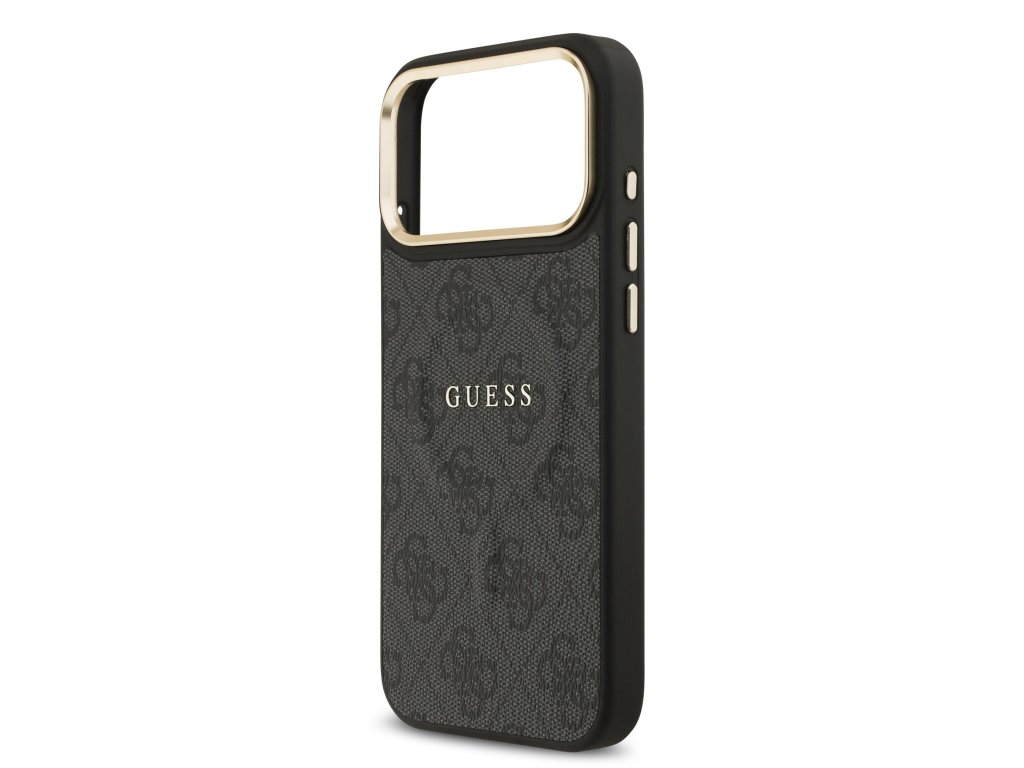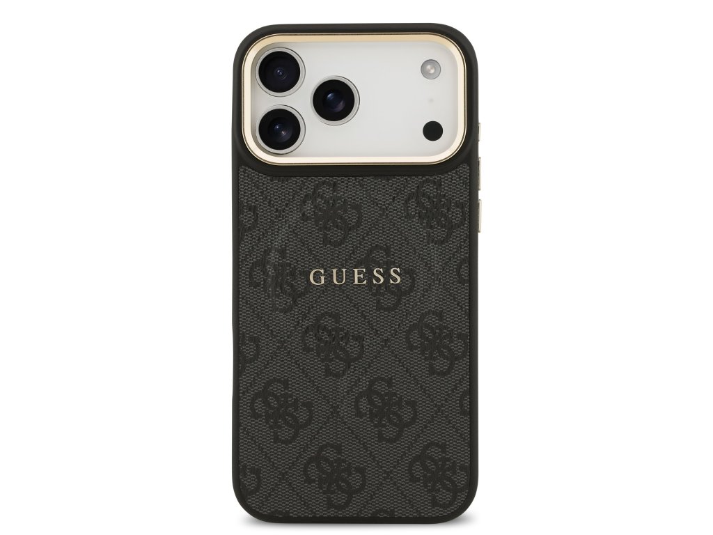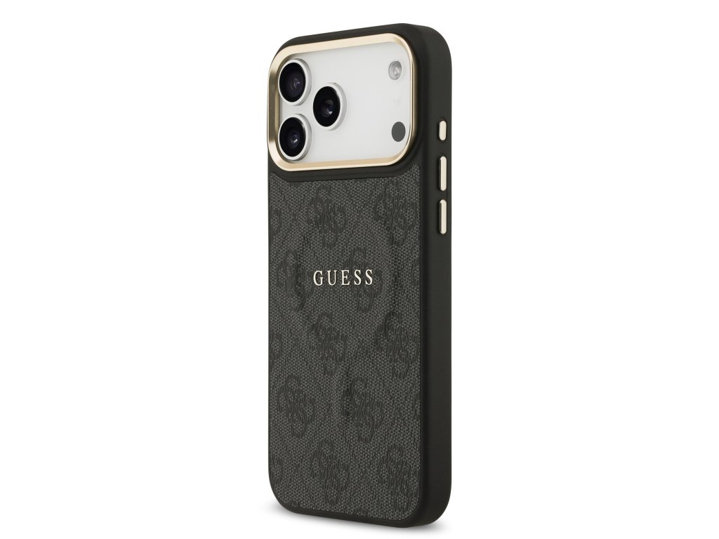 Guess PU Leather 4G Gold Frame MagSafe Zadní Kryt pro iPhone 17 Pro Max Black