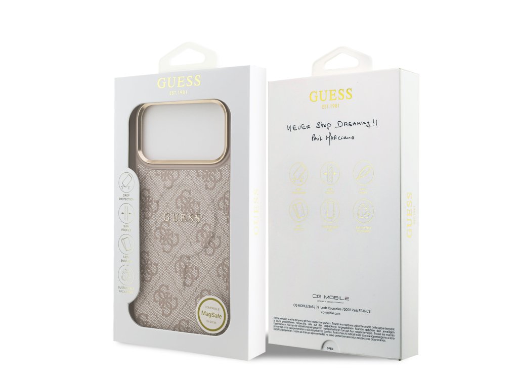 Guess PU Leather 4G Gold Frame MagSafe Zadní Kryt pro iPhone 17 Pro Max Pink