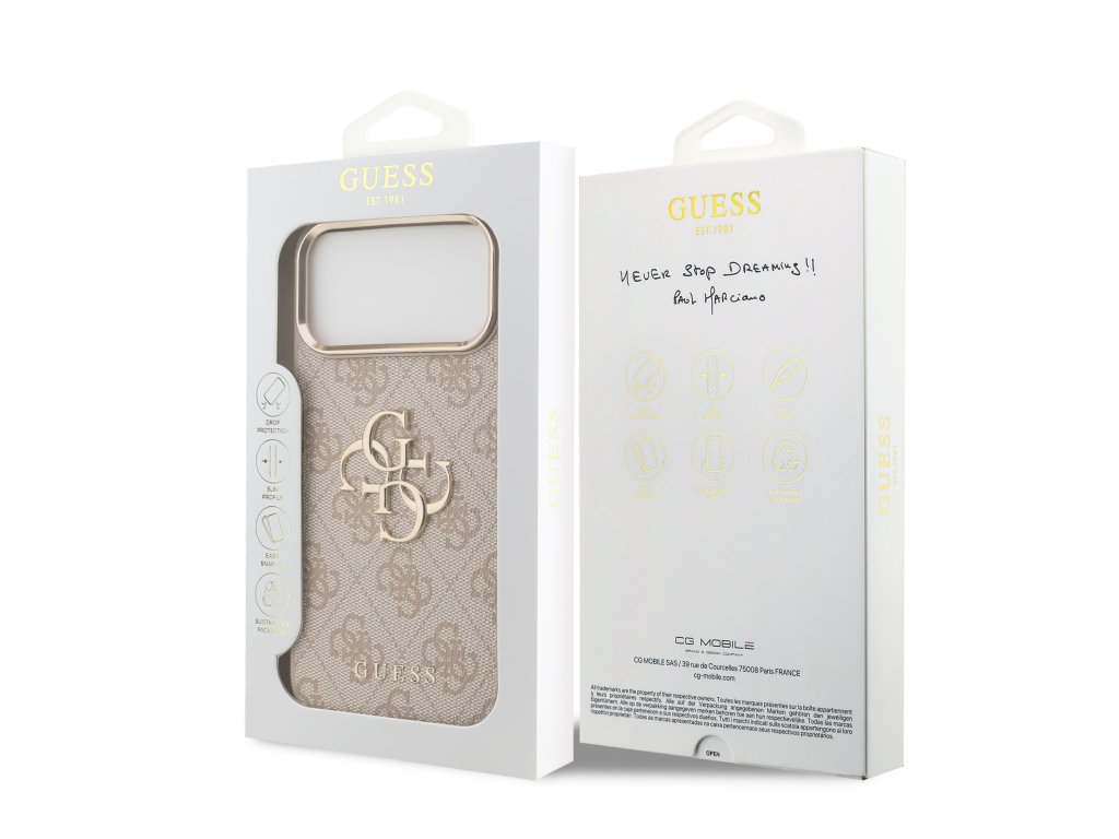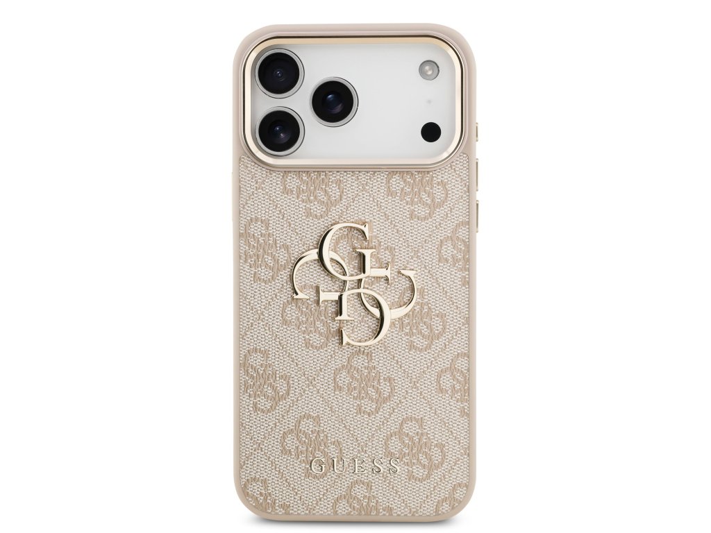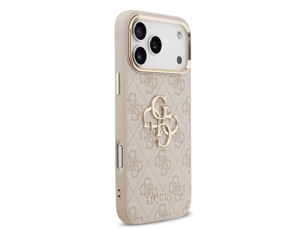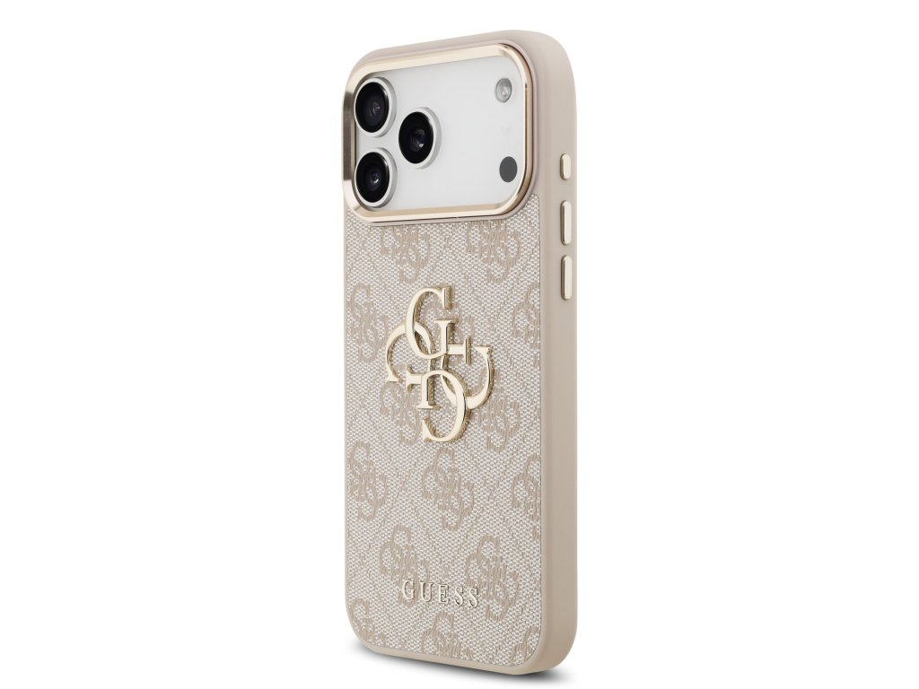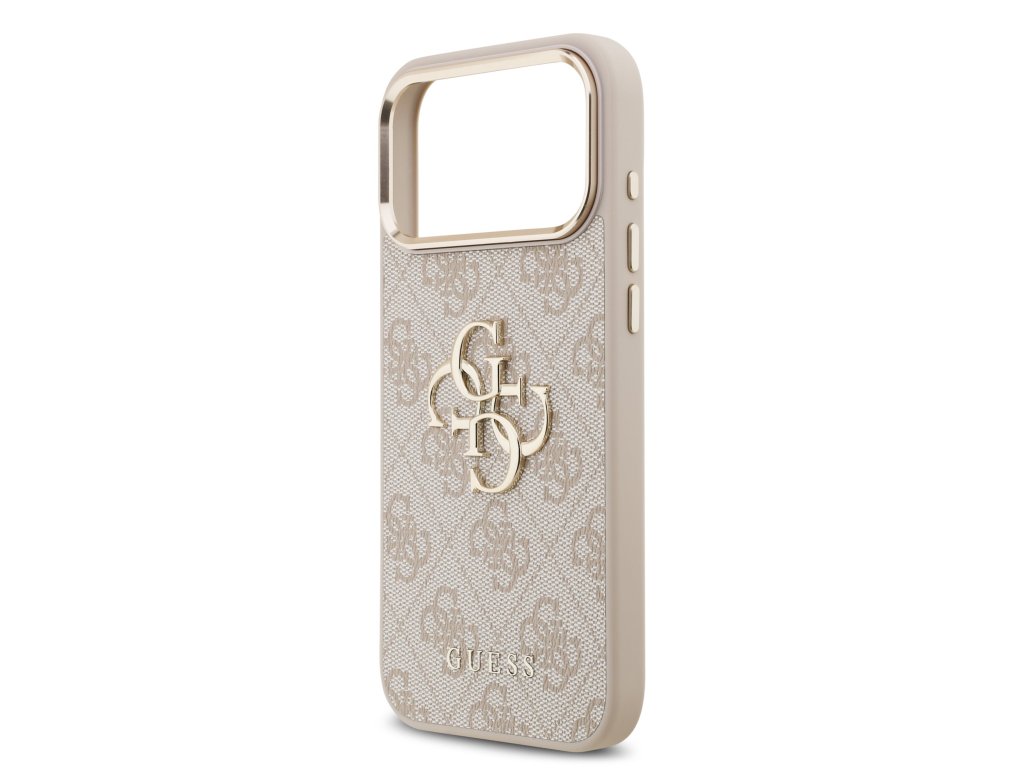 Guess PU Leather 4G Metal Logo Gold Frame Zadní Kryt pro iPhone 17 Pro Max Pink